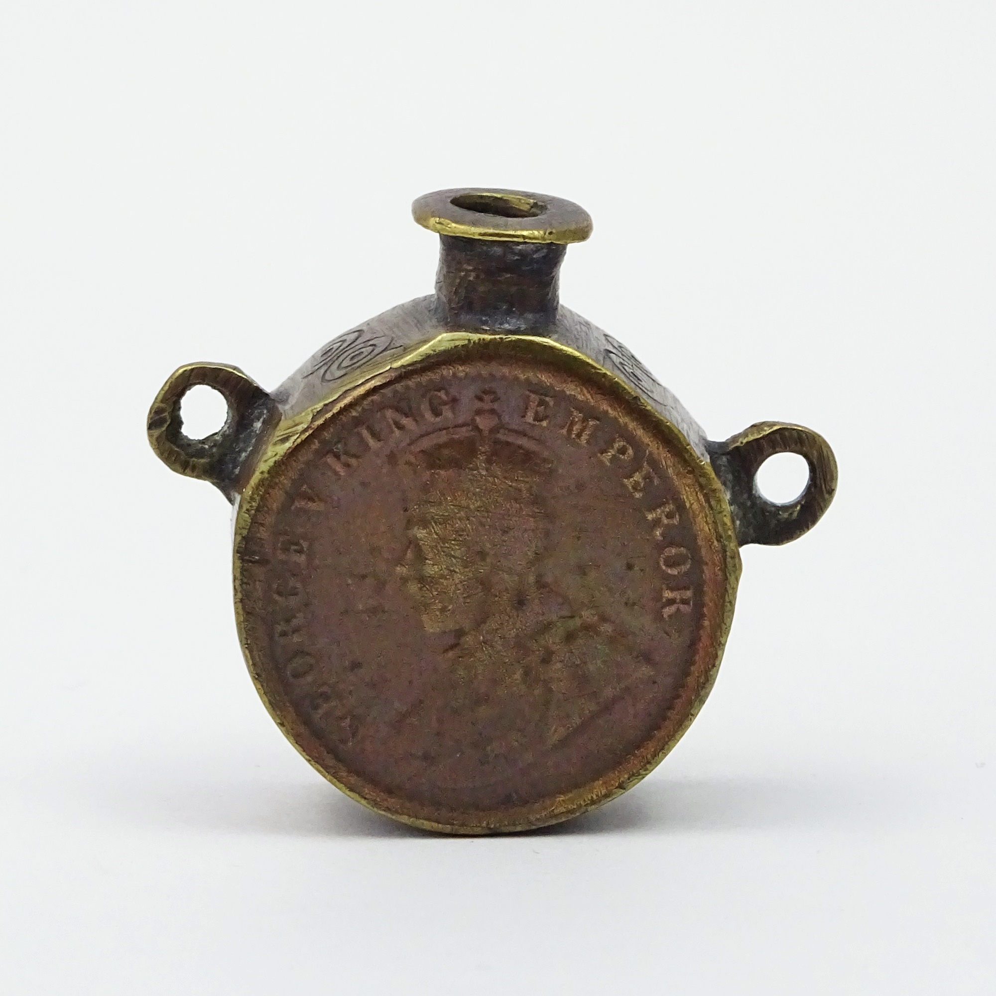 Home » Collection » Craft scent bottle made with two coins showing George V King and Emperor, coming from Kabul.