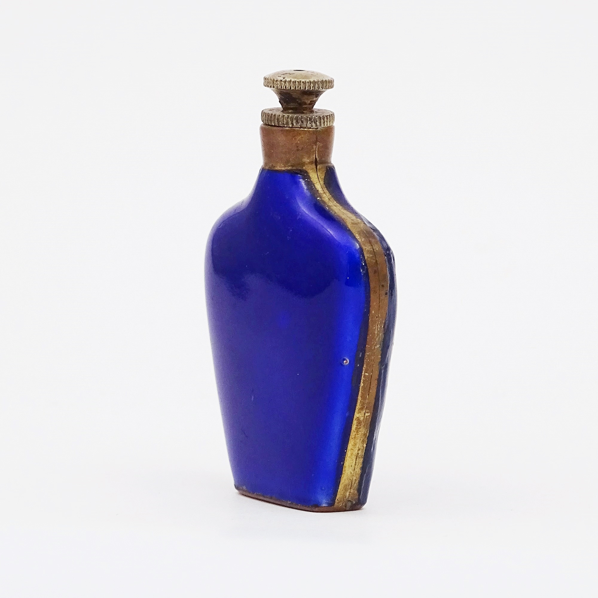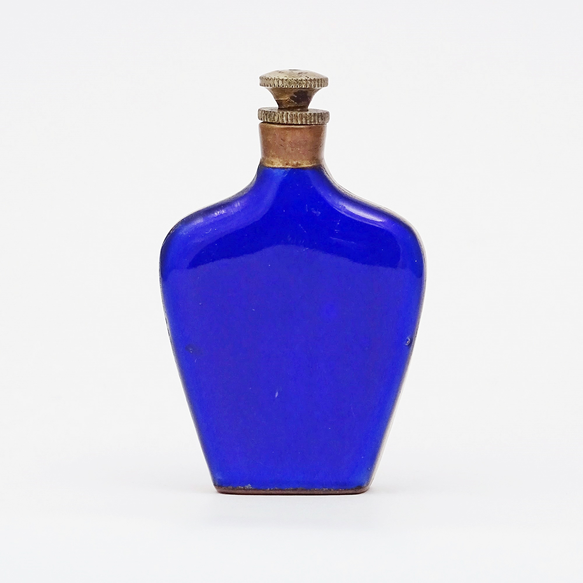 Electric blue guilloché enamelled scent bottle