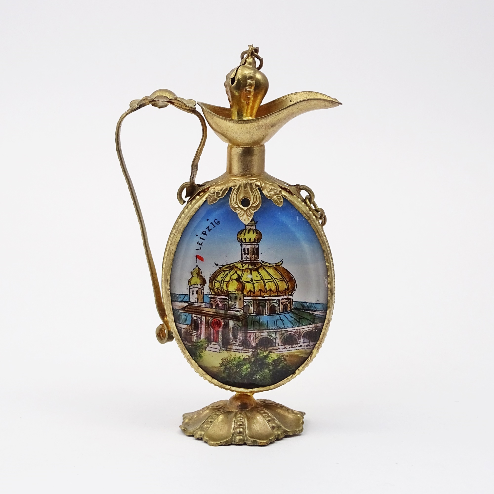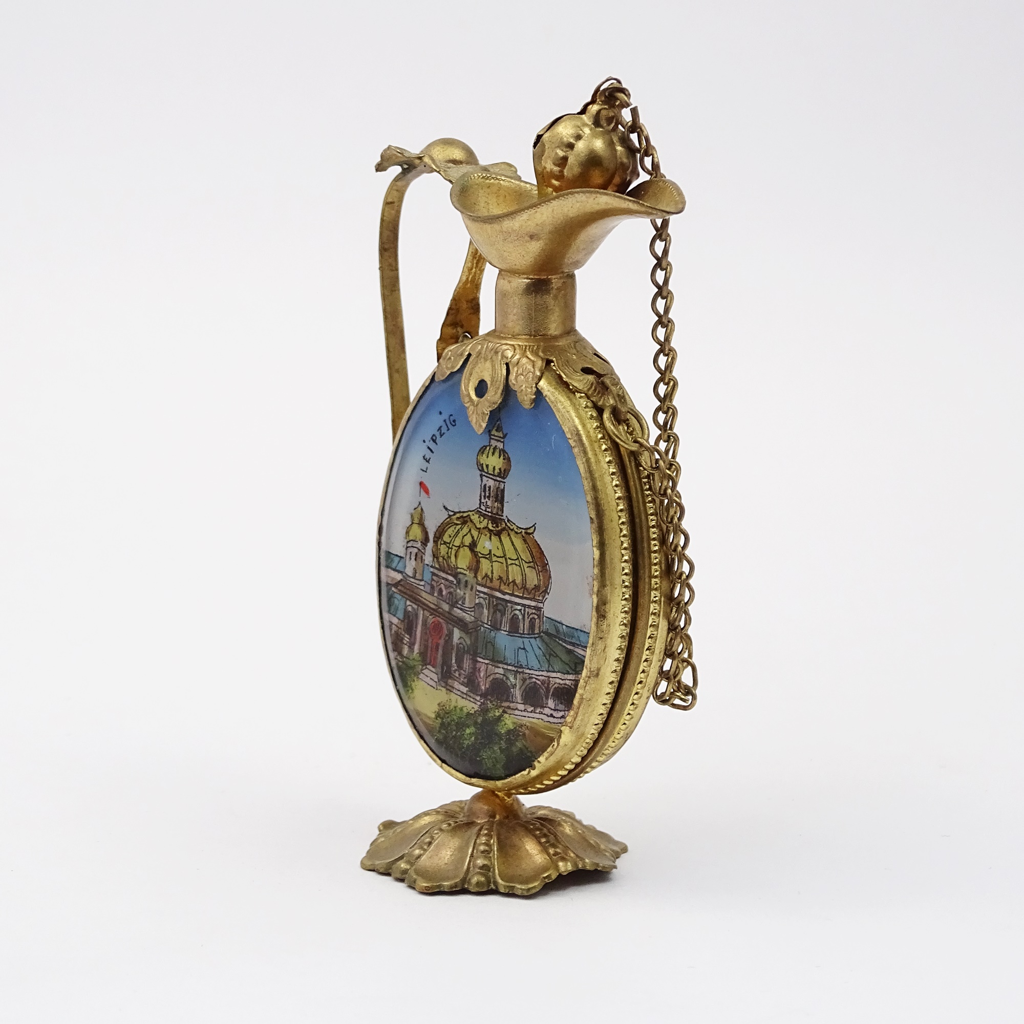 Ewer-shaped scent bottle, souvenir of Leipzig Expo, 1897