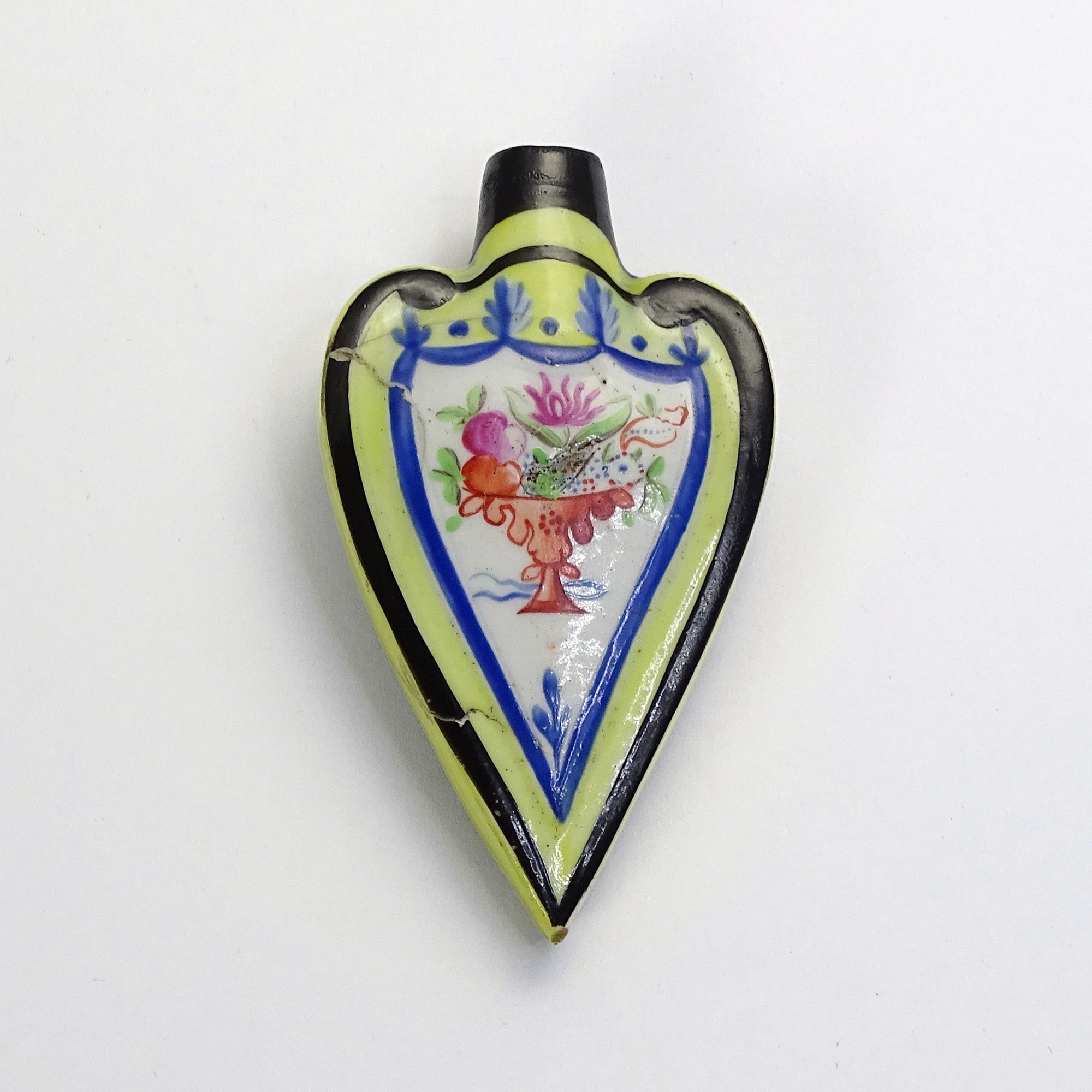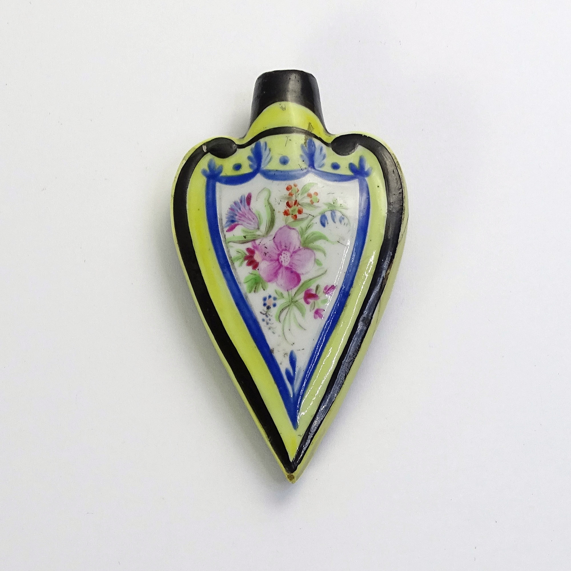 Home » Collection » Heart-shaped earthenware scent bottle with fine floral decorations