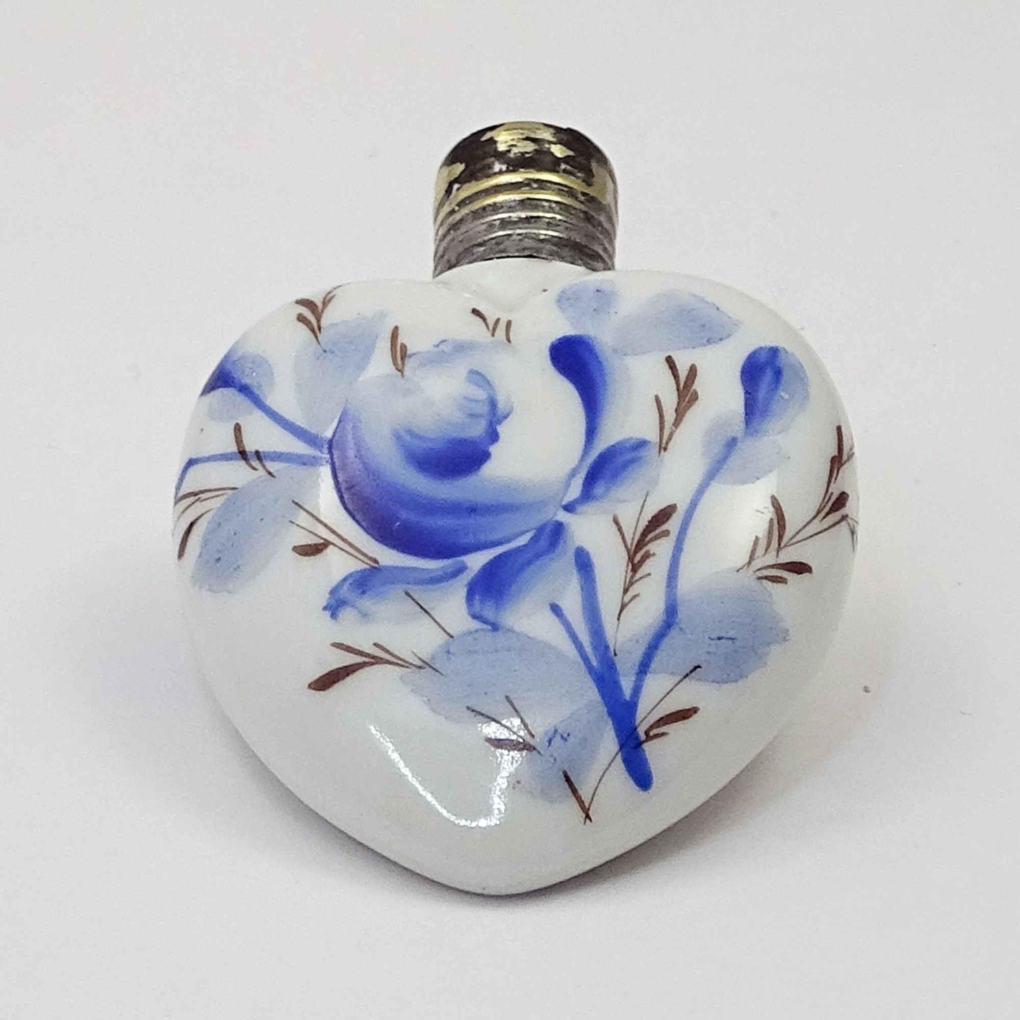 Home » Collection » Heart-shaped porcelain scent bottle with a blue rose.