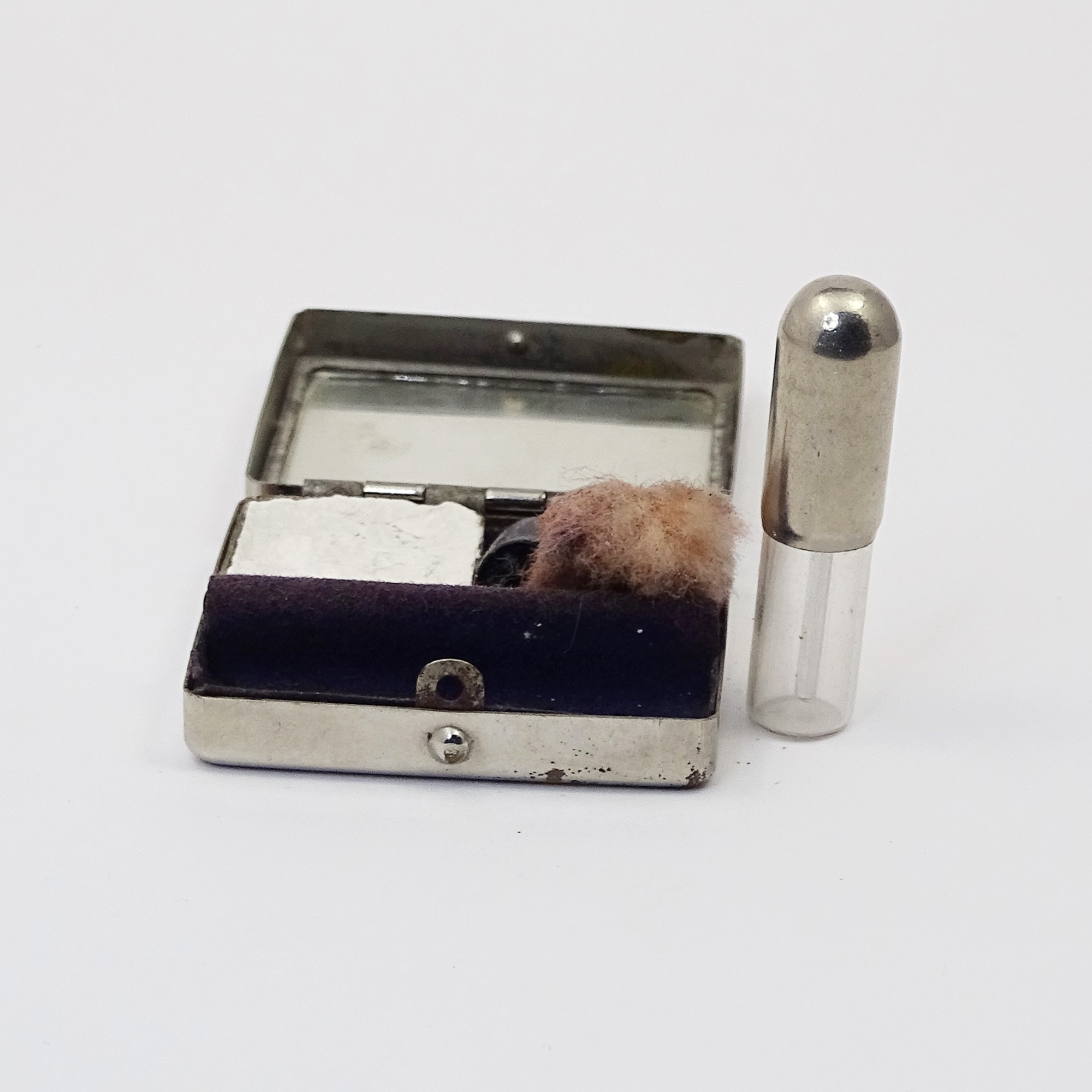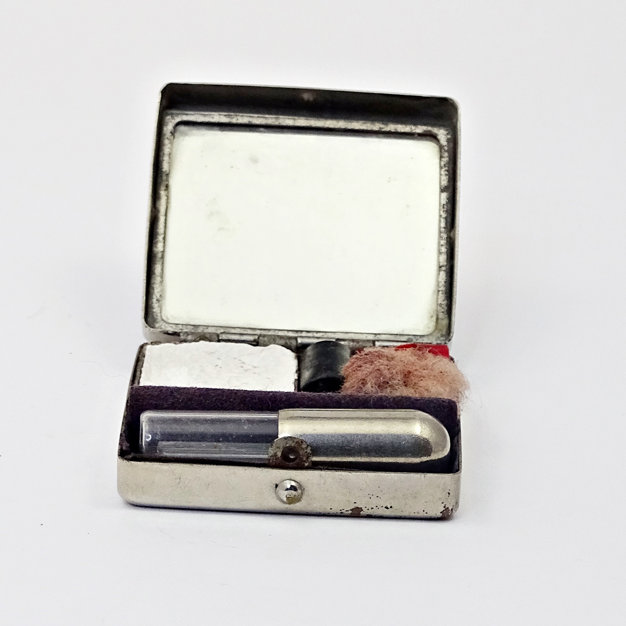 Home » Collection » Metal box with mirror, scent bottle and make up items