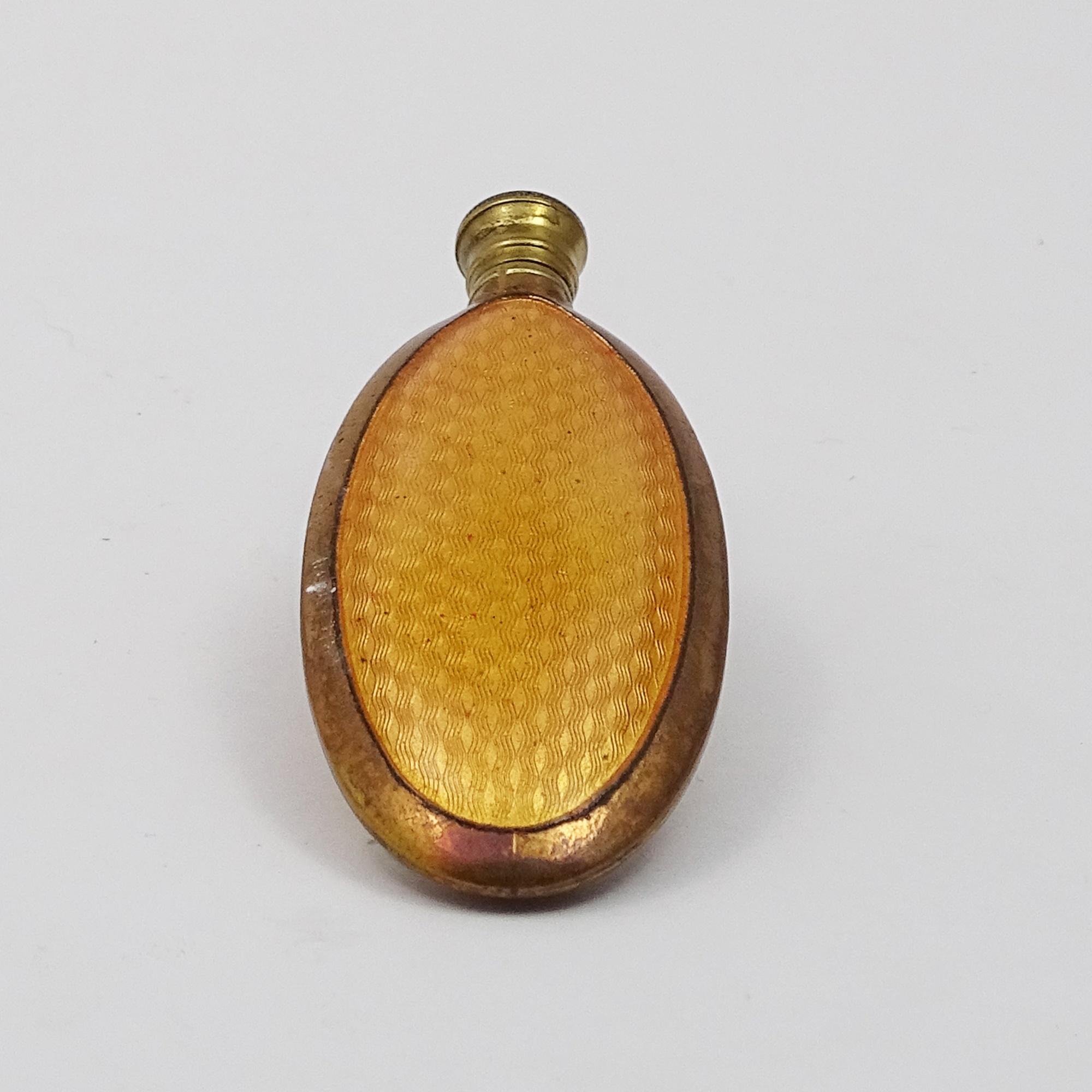 Home » Collection » Oval-shaped scent bottle in orange guilloche enamel on copper