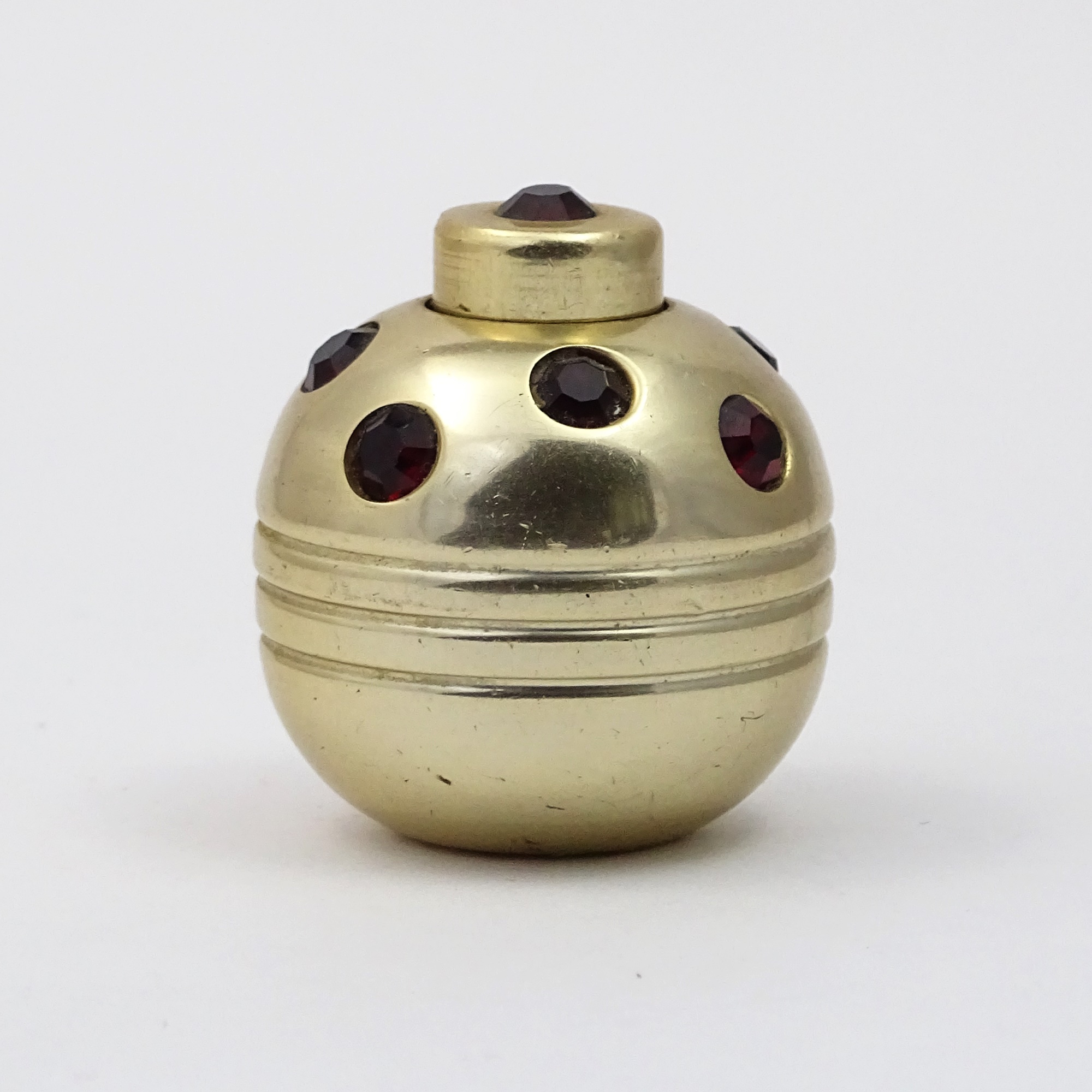 Ovoid gilt metal ovoid scent bottle with red glass stones