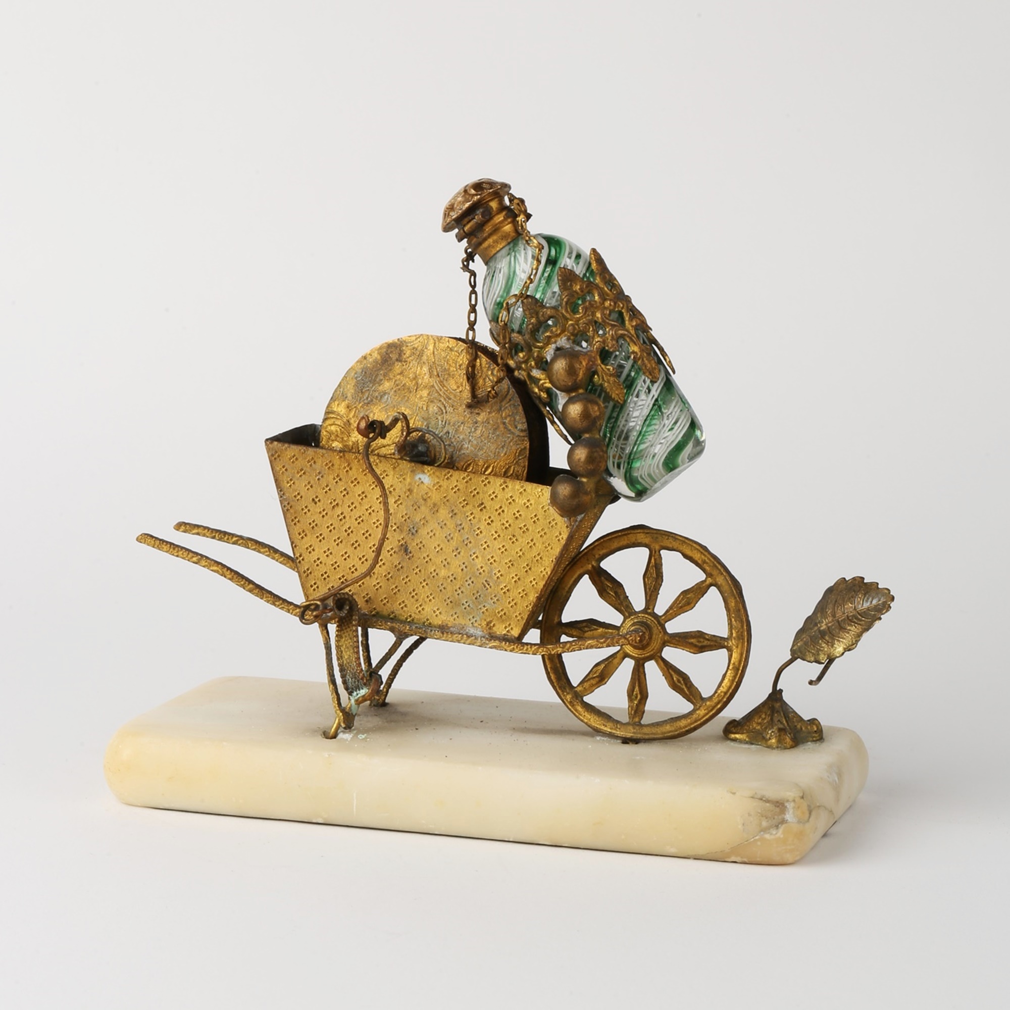 Palais Royal presentation, showing an ormolu grounding wheel with striped glass scent bottle