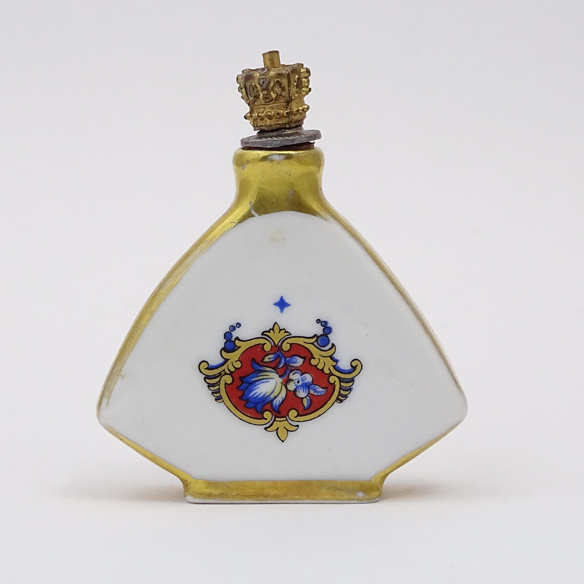 Home » Collection » Pentagonal white and gold porcelain scent bottle with decal of a Paradise Bird