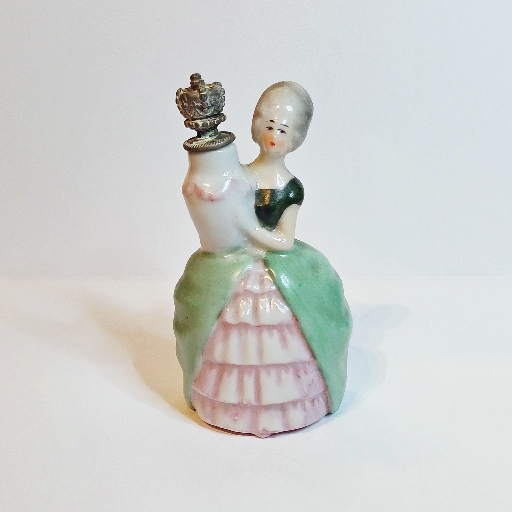 Home » Collection » Porcelain scent bottle depicting a lady in crinoline with an urn