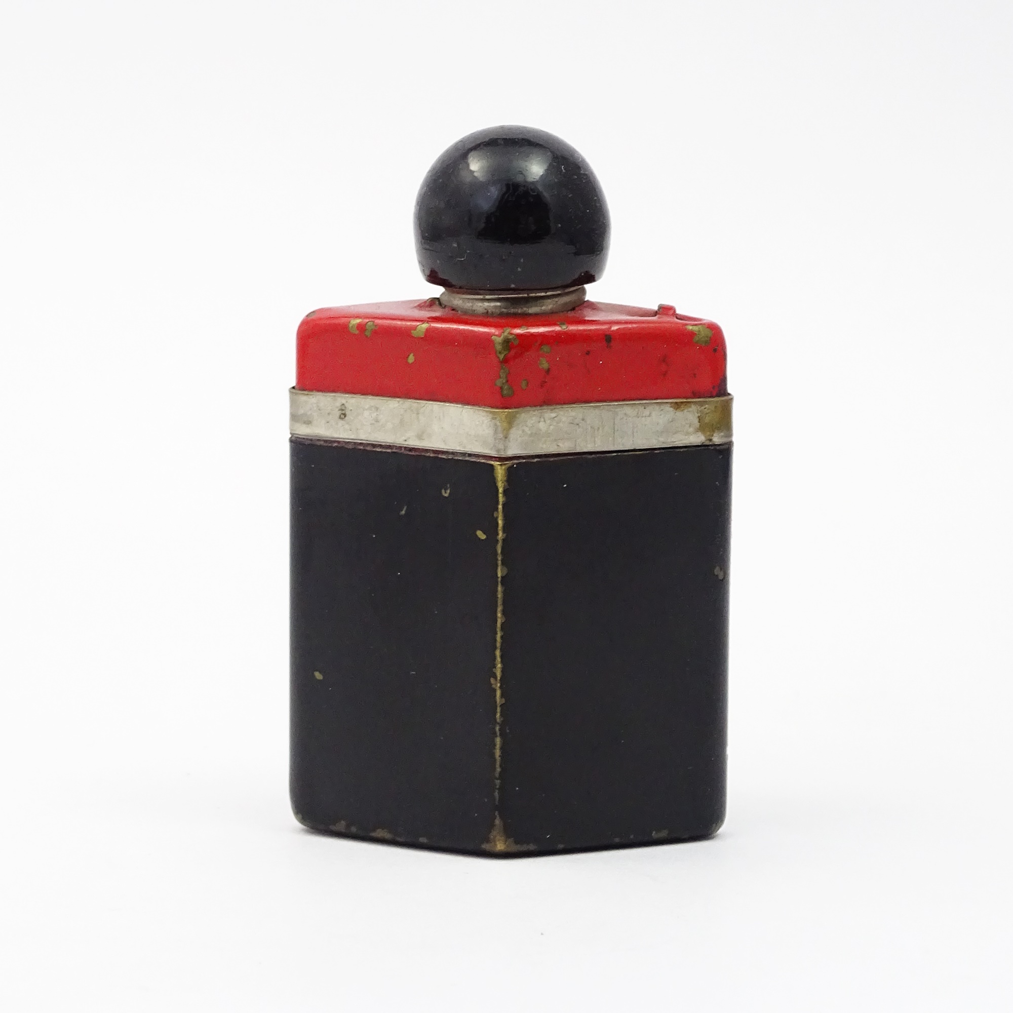 Home » Collection » Rhomboid-prism shaped scent bottle in black and red enamelled metal