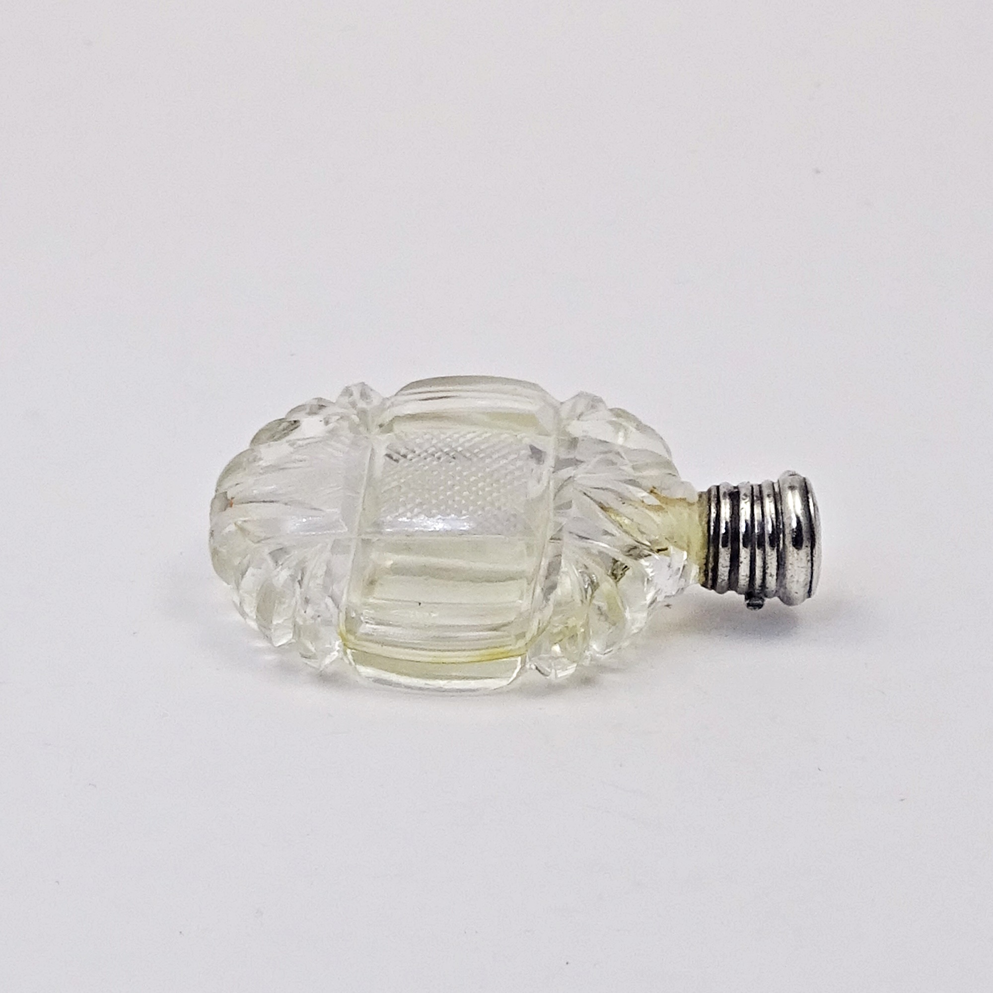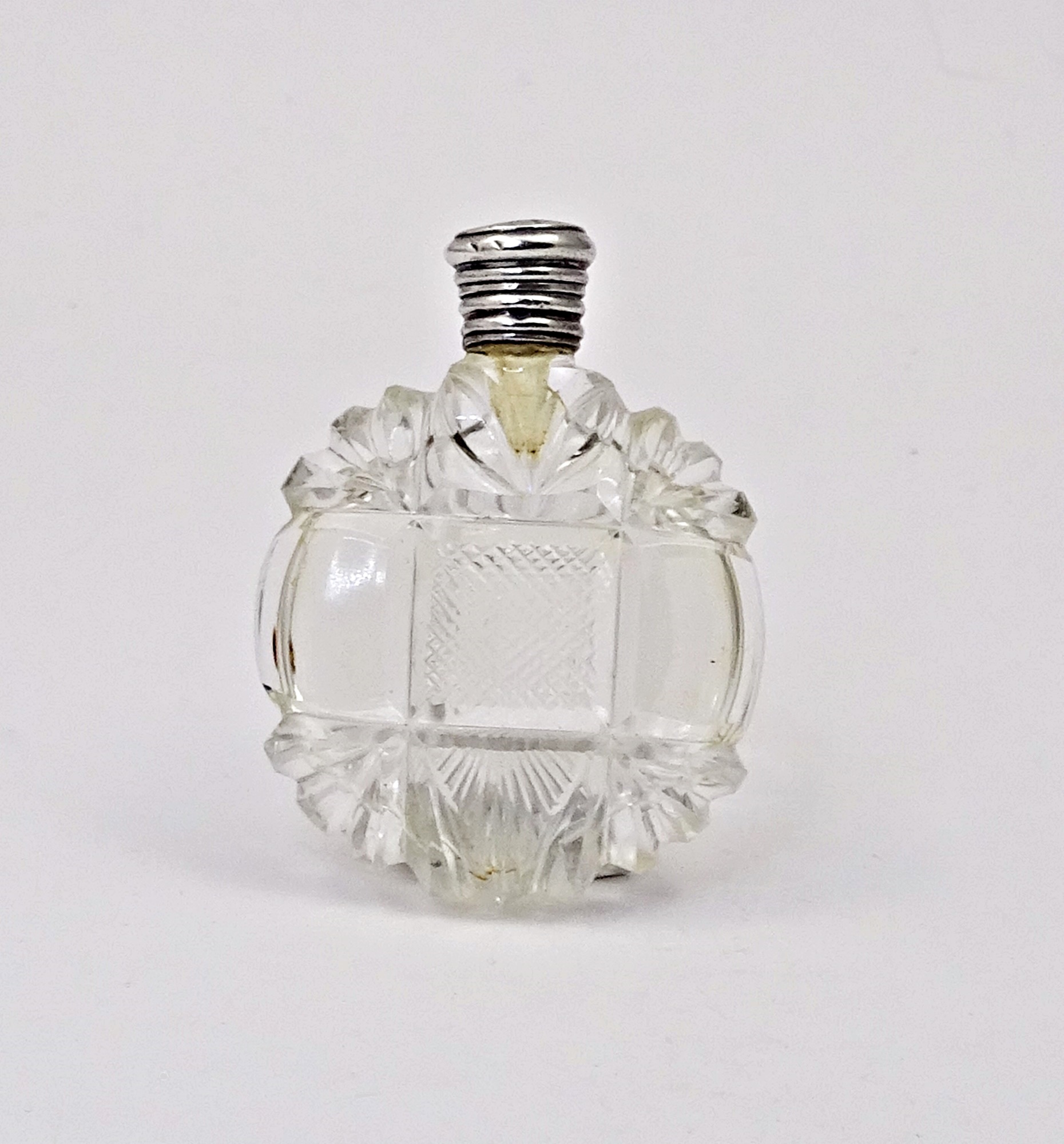 Home » Collection » Richly cut crystal scent bottle with silver screw cap