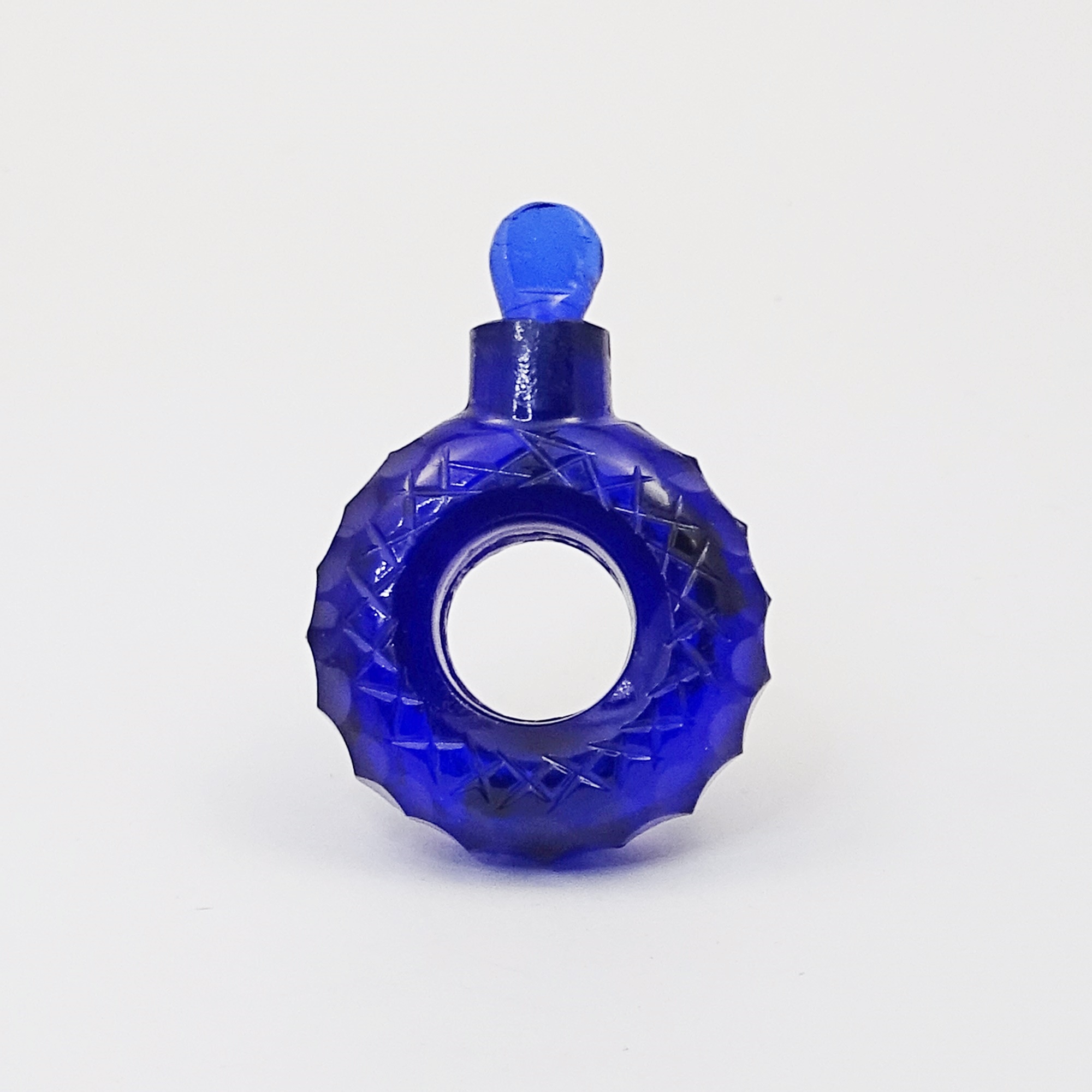 Ring-shaped scent bottle in Bristol blue cut glass