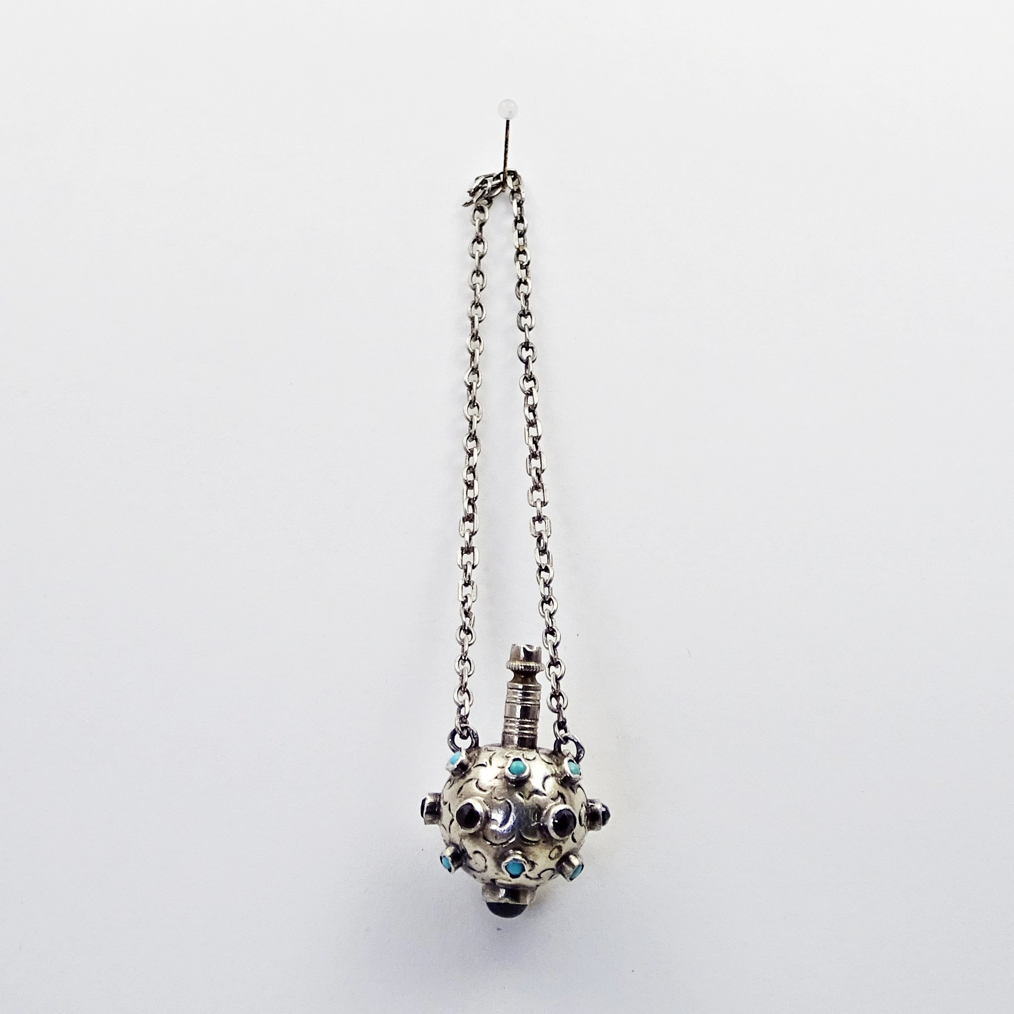 Home » Collection » Sea mine-shaped pendant scent bottle in silver and stones