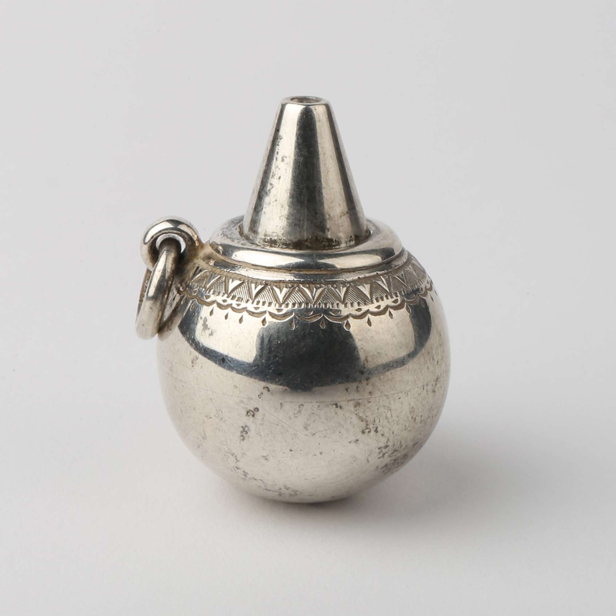 Home » Collection » Silver spherical scent bottle with incorporating spray operated by pushing