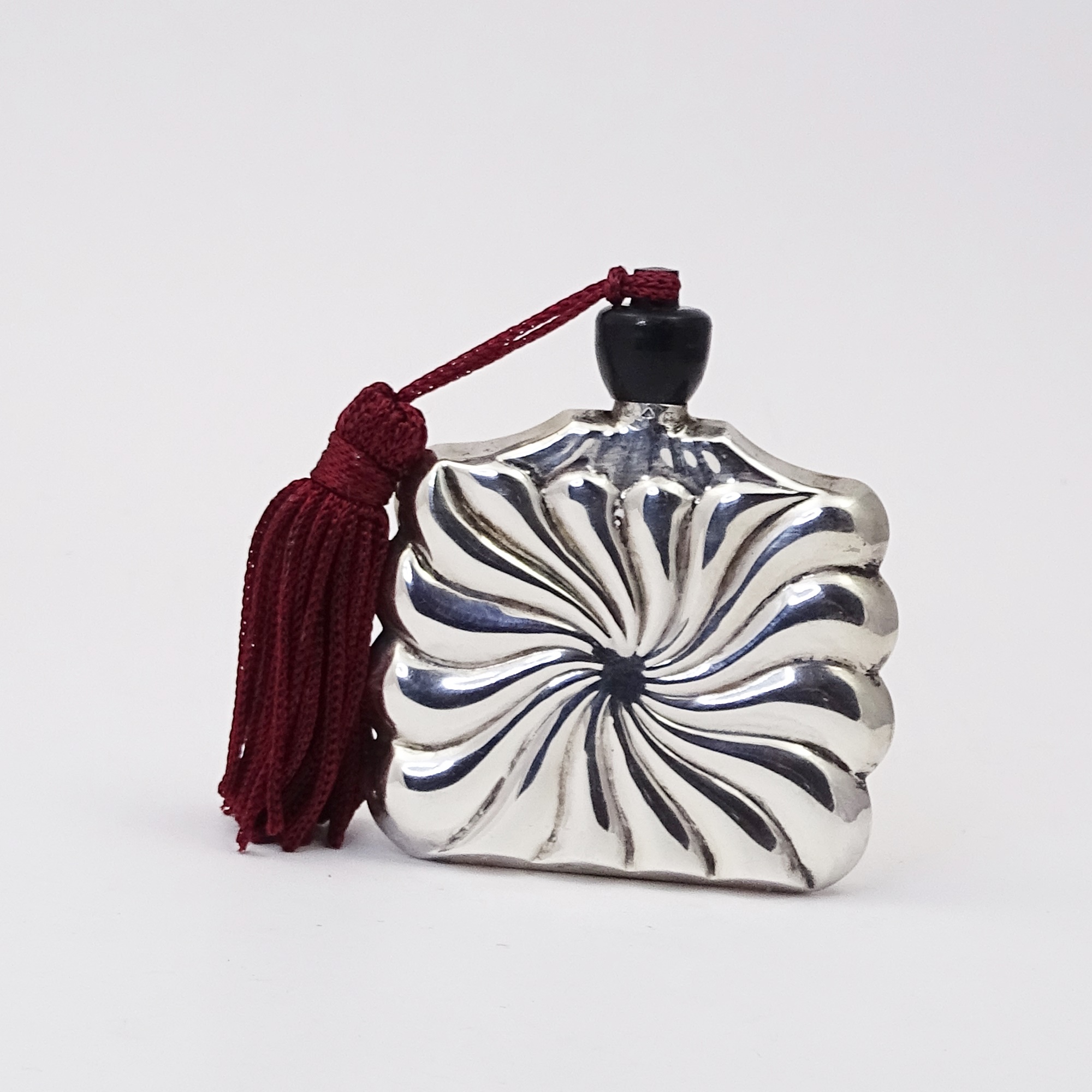 Home » Collection » Stamped silver scent bottle with wavy sunburst decor on both sides