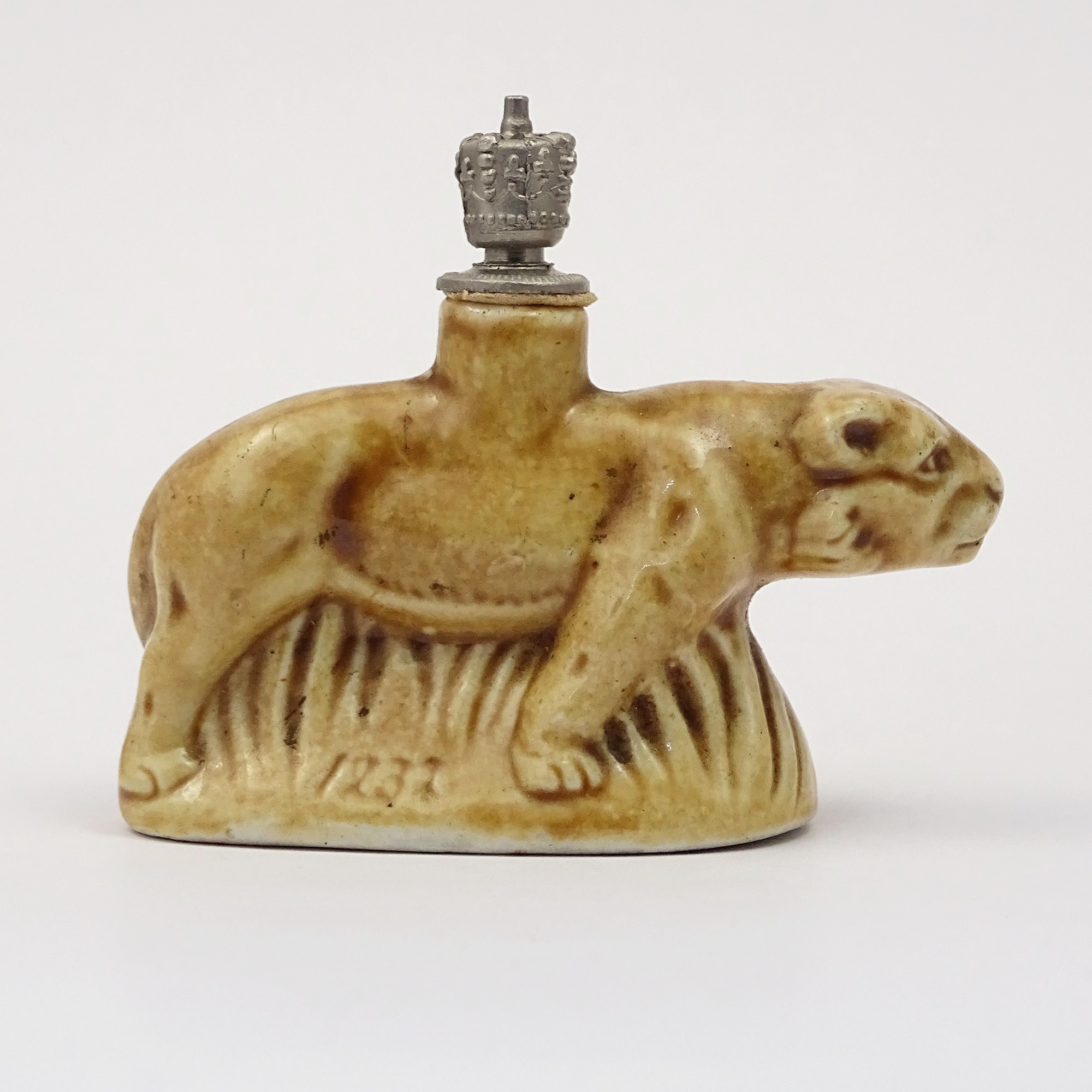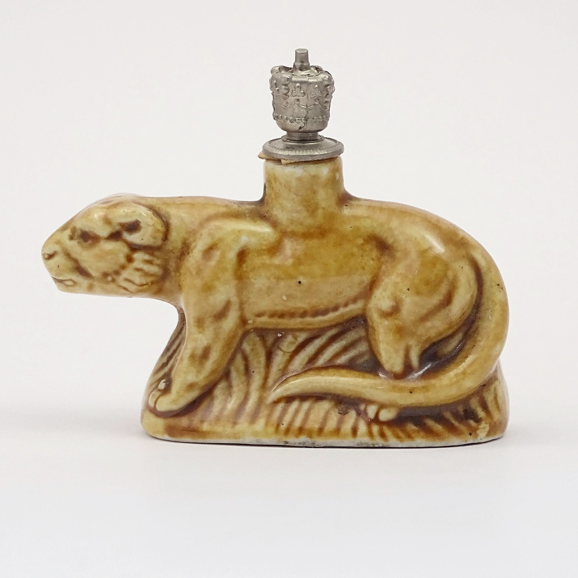 Home » Collection » Tan porcelain scent bottle depicting a lioness