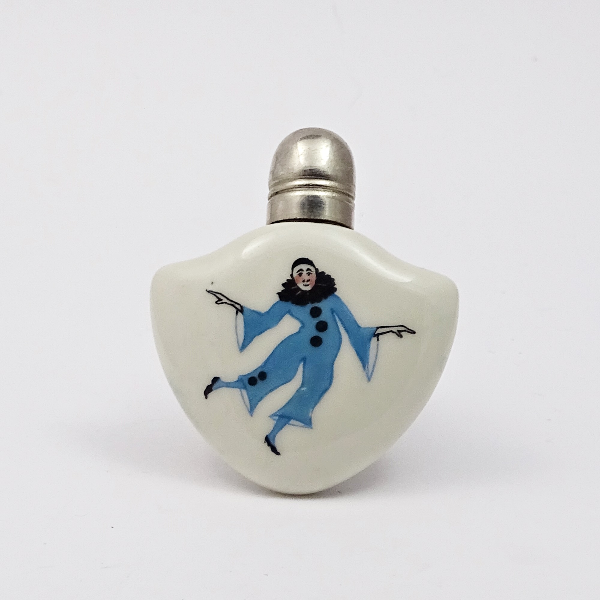 Home » Collection » White porcelain scent bottle with a dancing Pierrot in blue dress