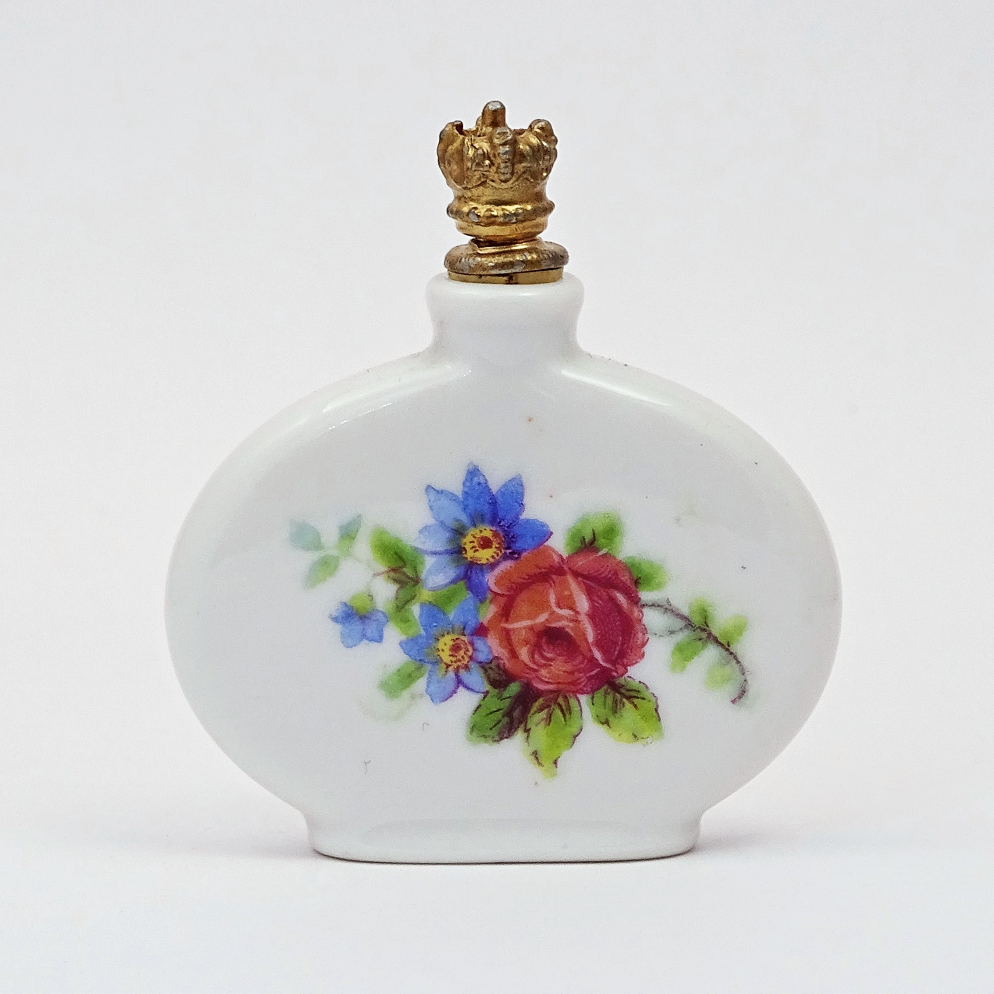 Home » Collection » White porcelain scent bottle with a decal of a flowers bouquet