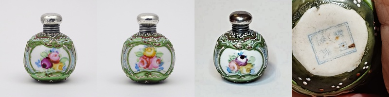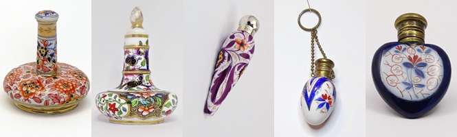 The most popular and copied Japanese style in the European scent bottles was, without any doubt, the Imari style: actually all the porcelaian scent bottles shown below are manufactured in England and show how much the Oriental style was revered in the Victorian times.