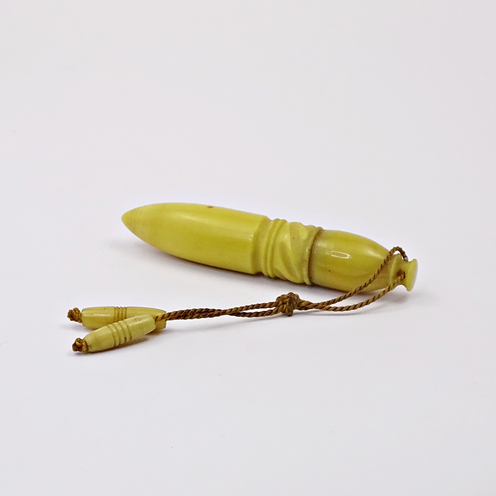 Silvered metal container, with a little foxy dog on the top containing a glass scent bottle Discover more