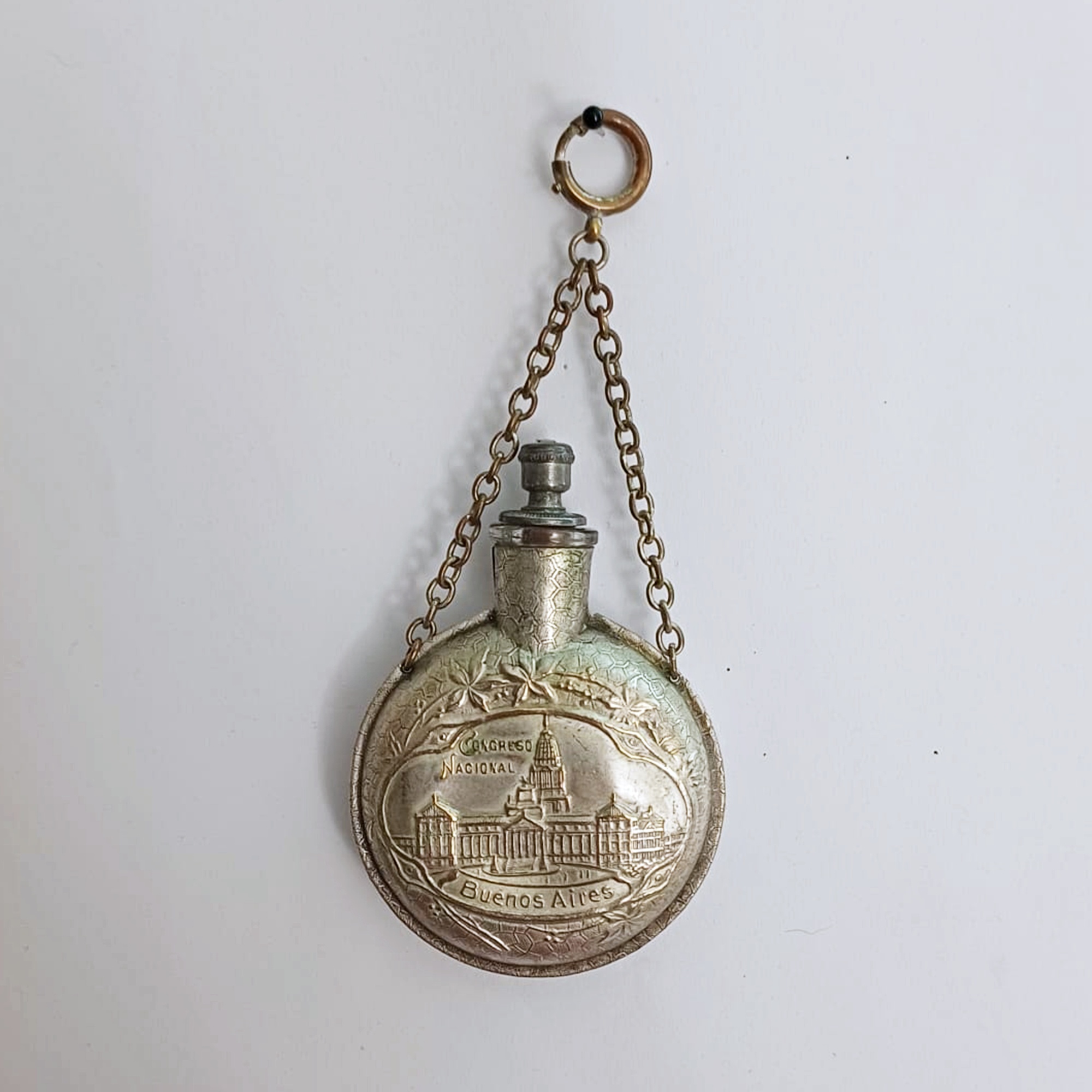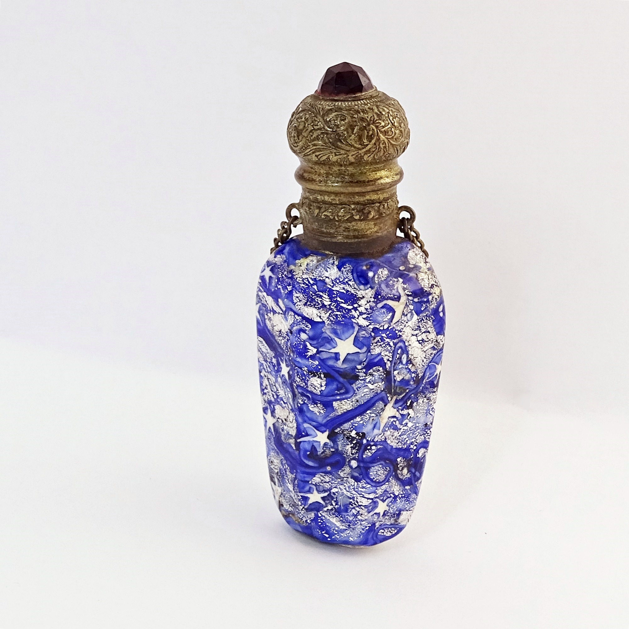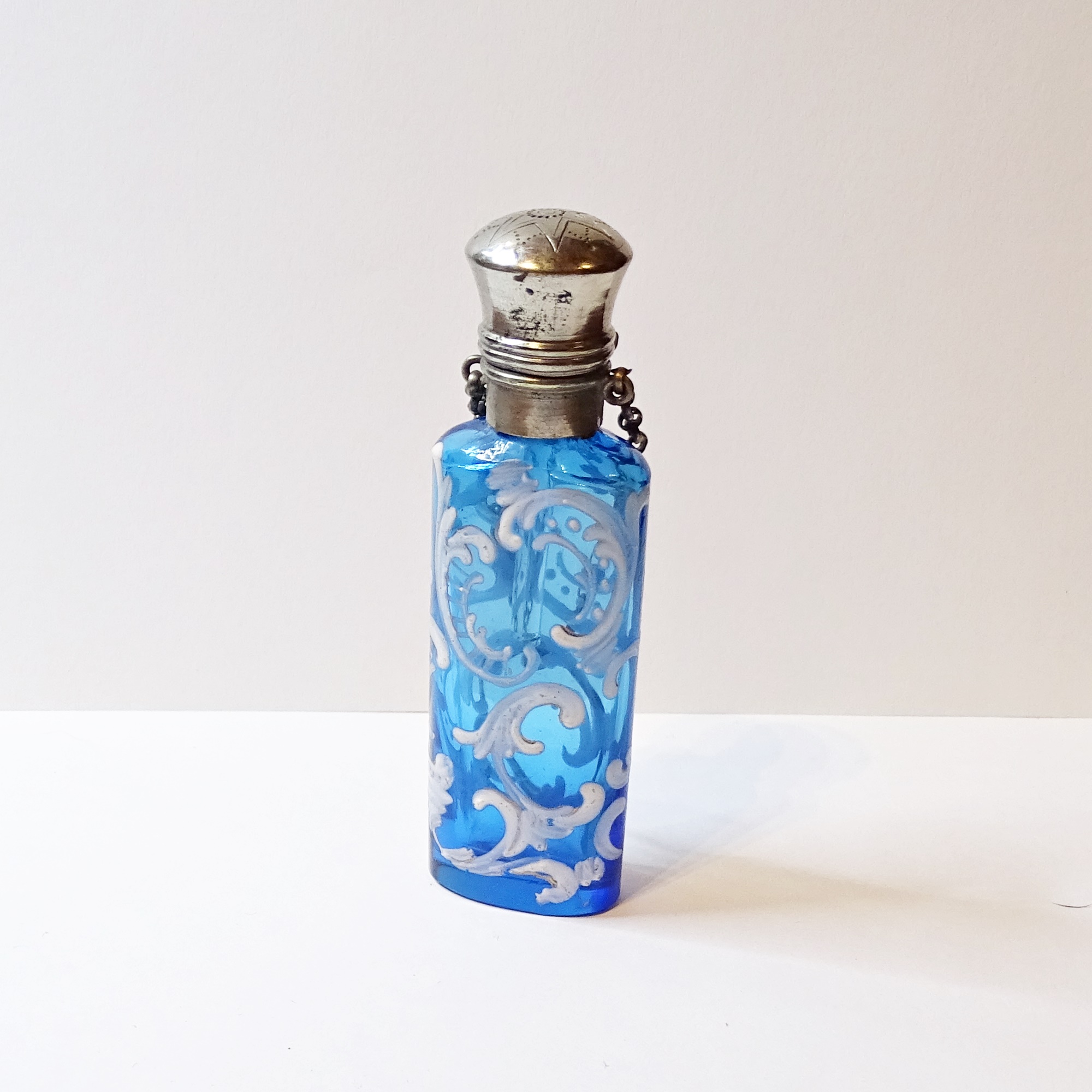 Chatelaine glass and metal scent bottle with dancing ladies and Napoleon’s bust on the cap Discover more
