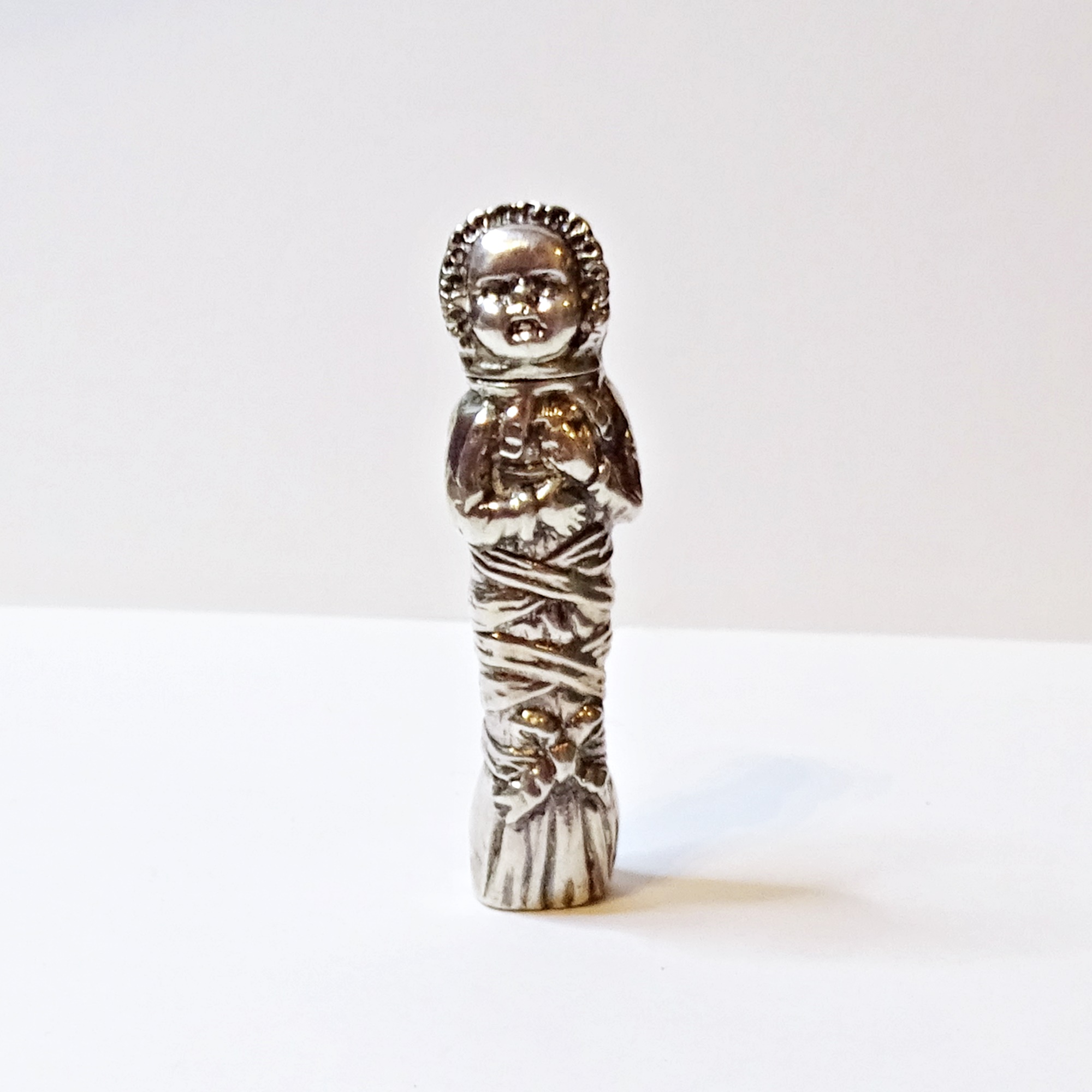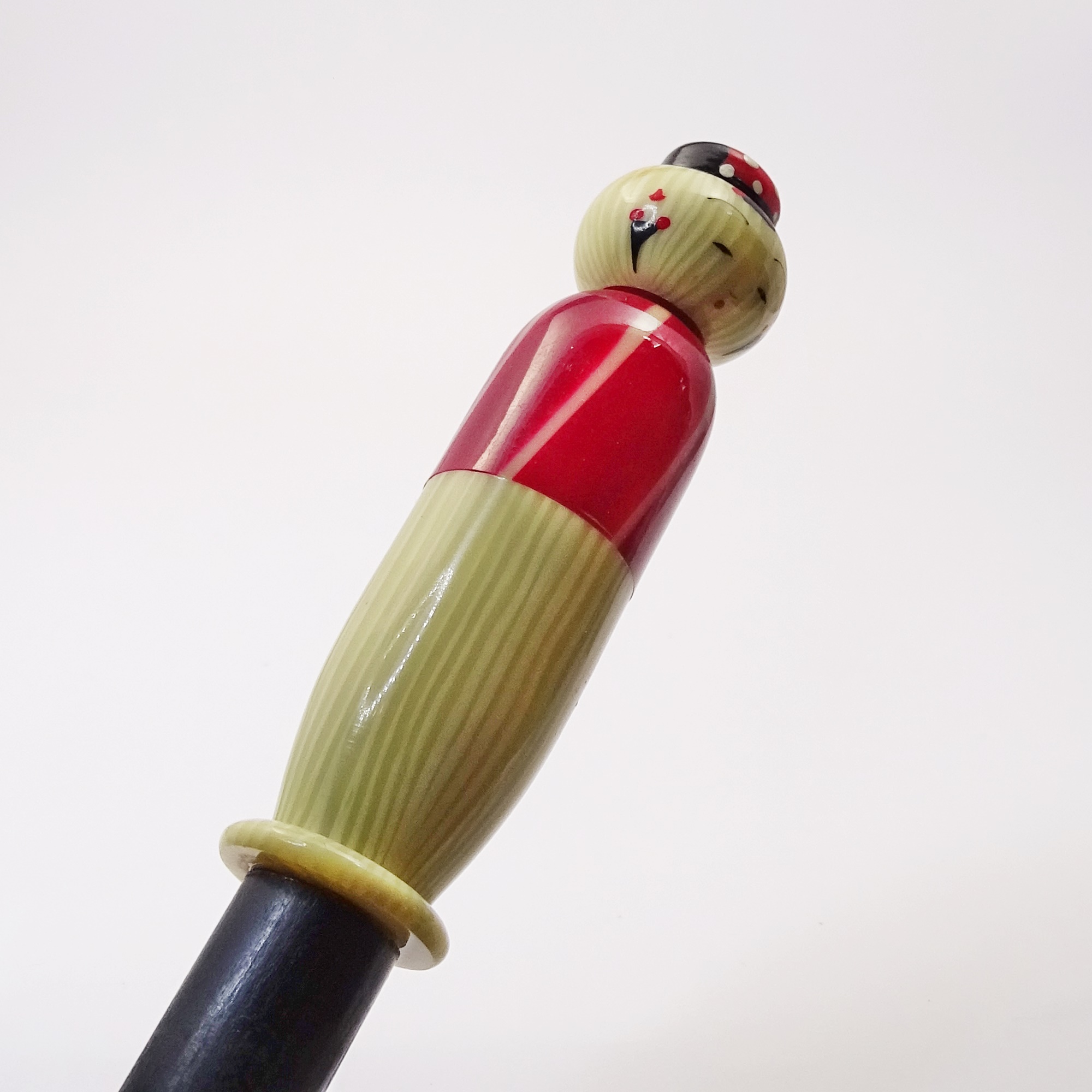 Gadget cane in painted wood with the bakelite grip made as a little geisha with inner glass vial Discover more