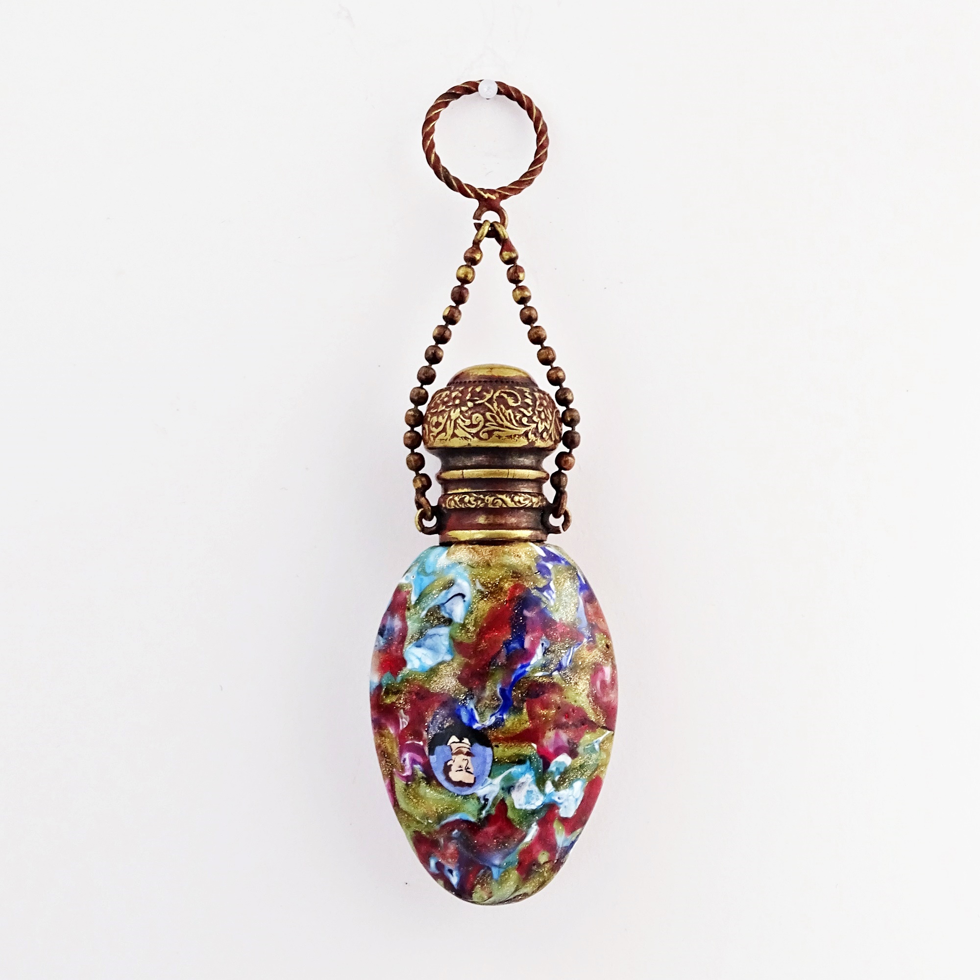 Chatelaine scent bottle in Murano glass with murrine featuring three high quality portraits Discover more