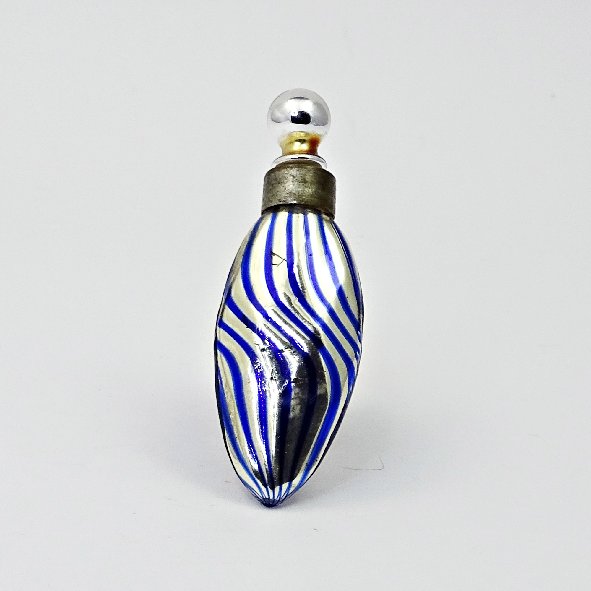 Hand-painted smoked glass scent bottle with golden bands and a round medallion imitating a cameo Discover more