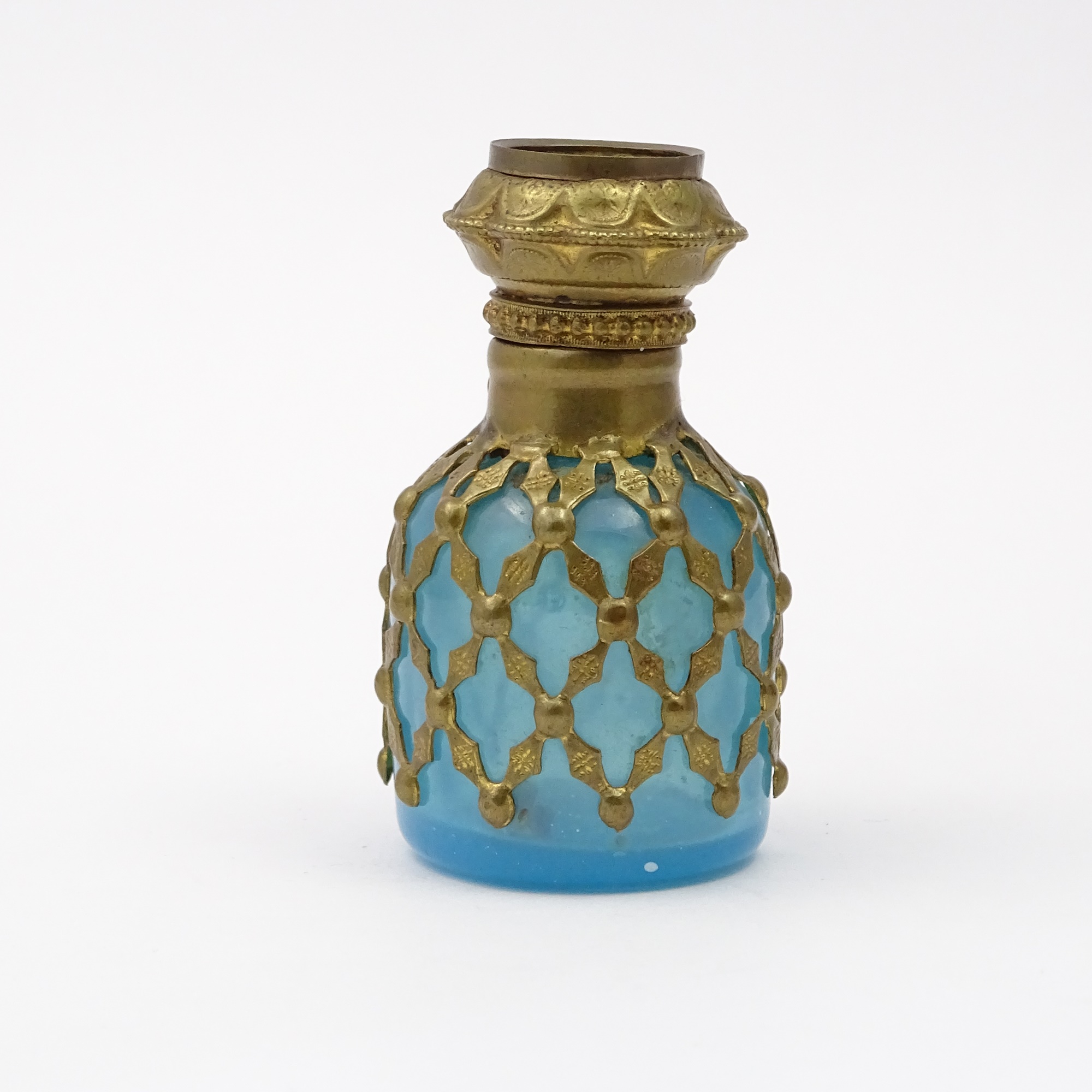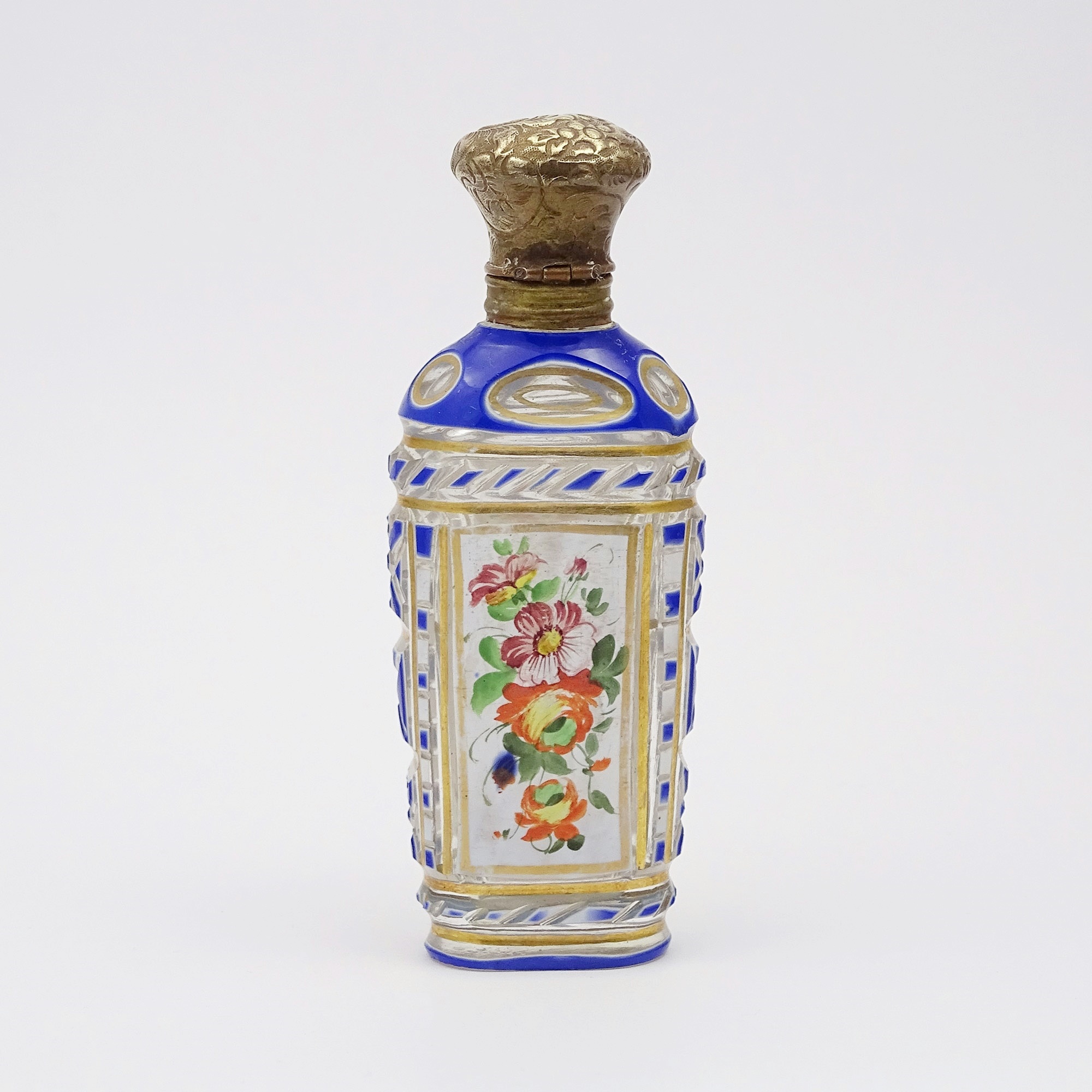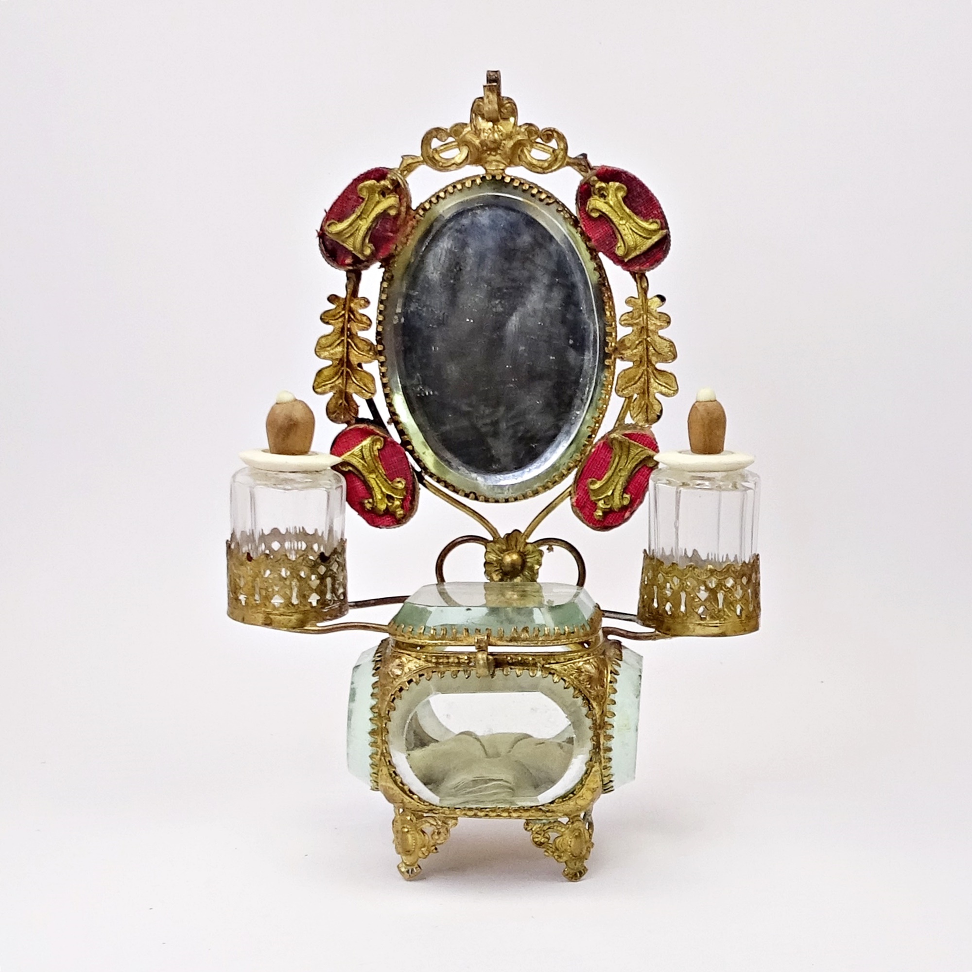 Palais Royal presentation: table vanity scent with a mirror, two glass scent bottles and a jewels box Discover more