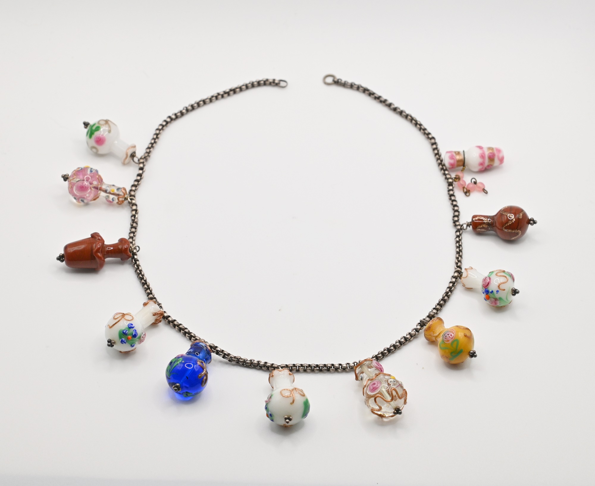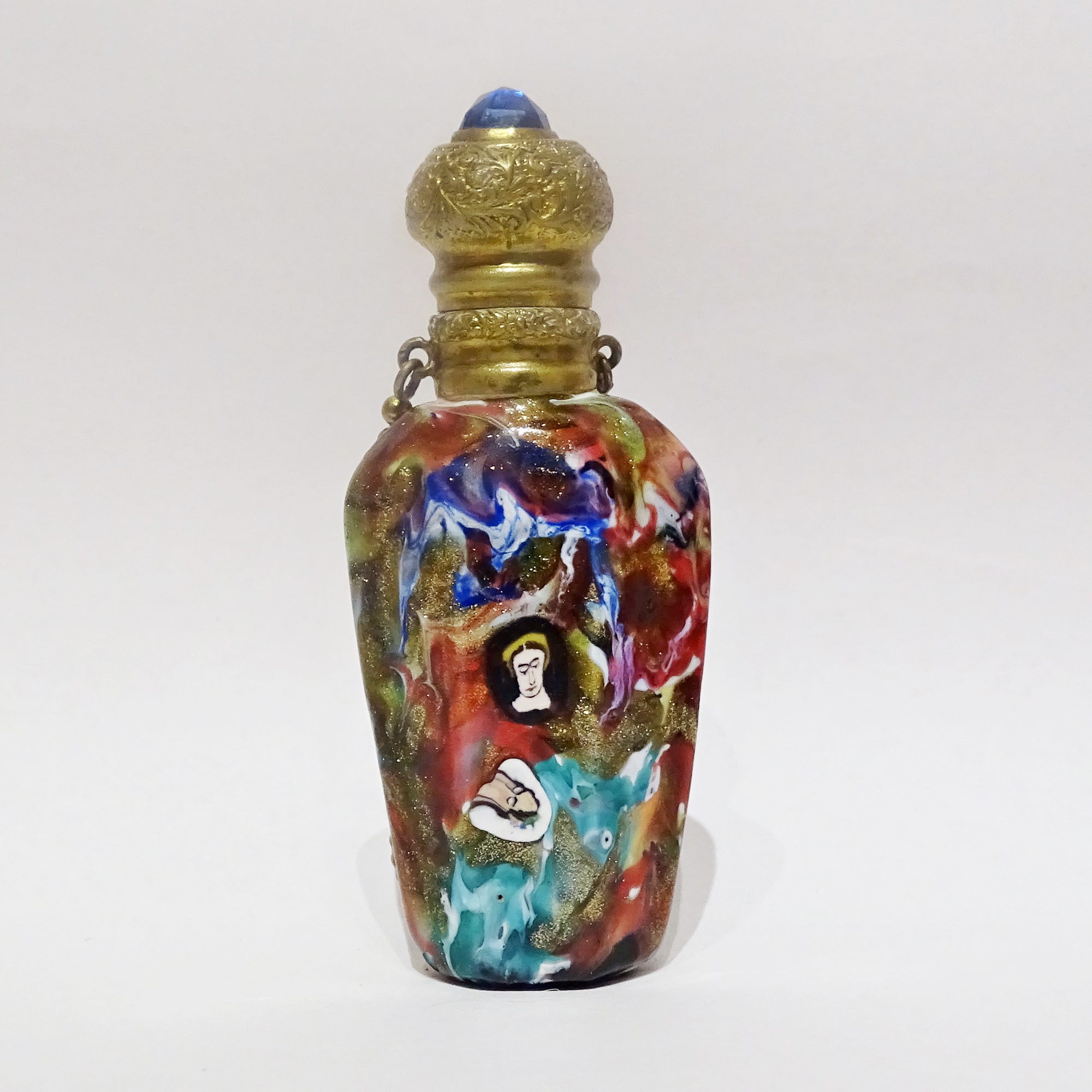 Faceted chatelaine scent bottle in Murano glass with murrine featuring portraits of women Discover more
