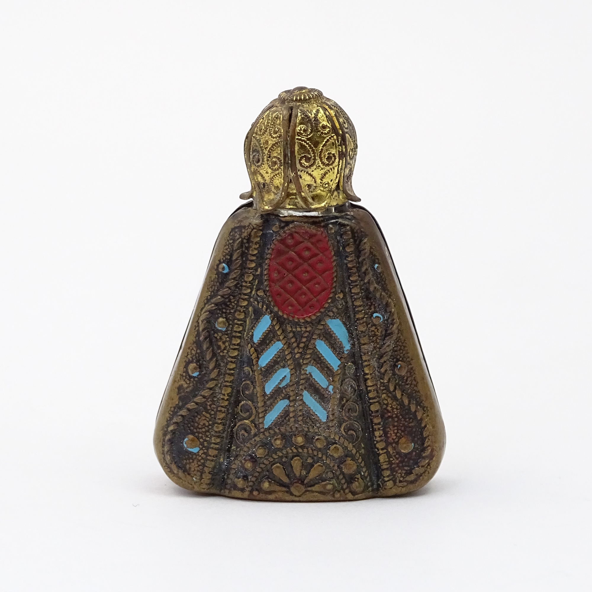 Glass bottle in a gilt metal cage with the royalty hemblems, made for Elizabeth II’s coronation Discover more