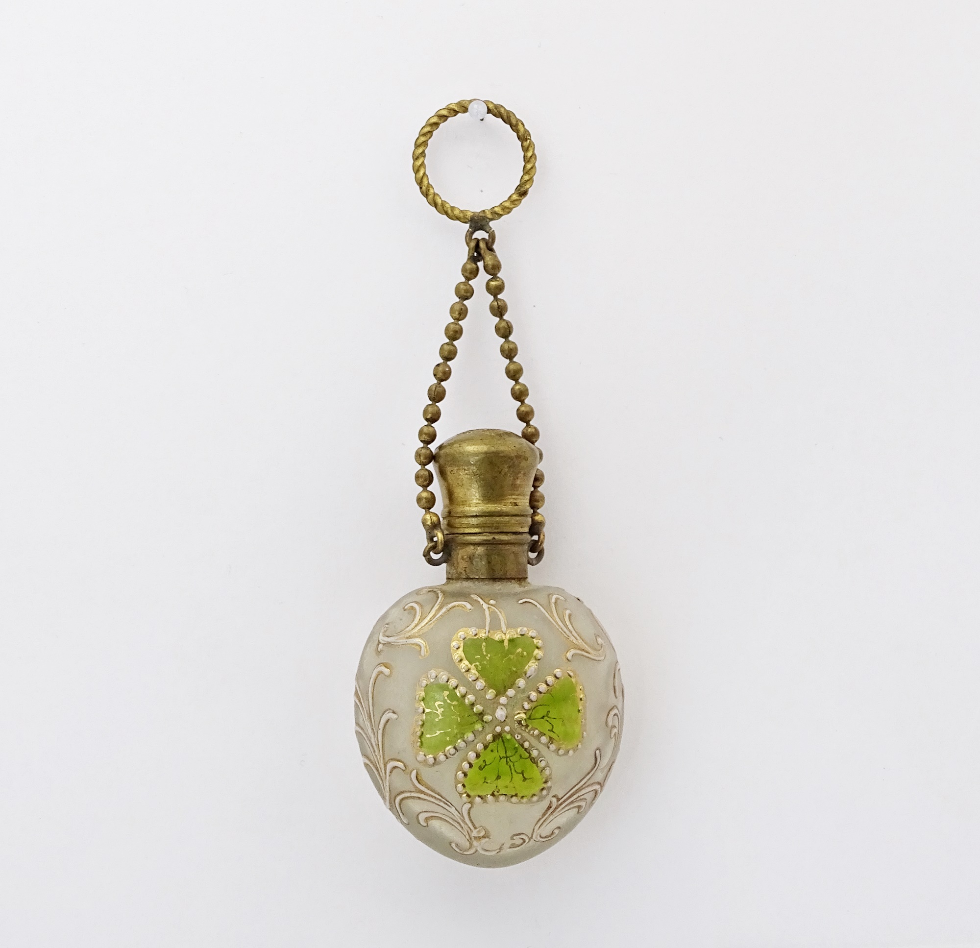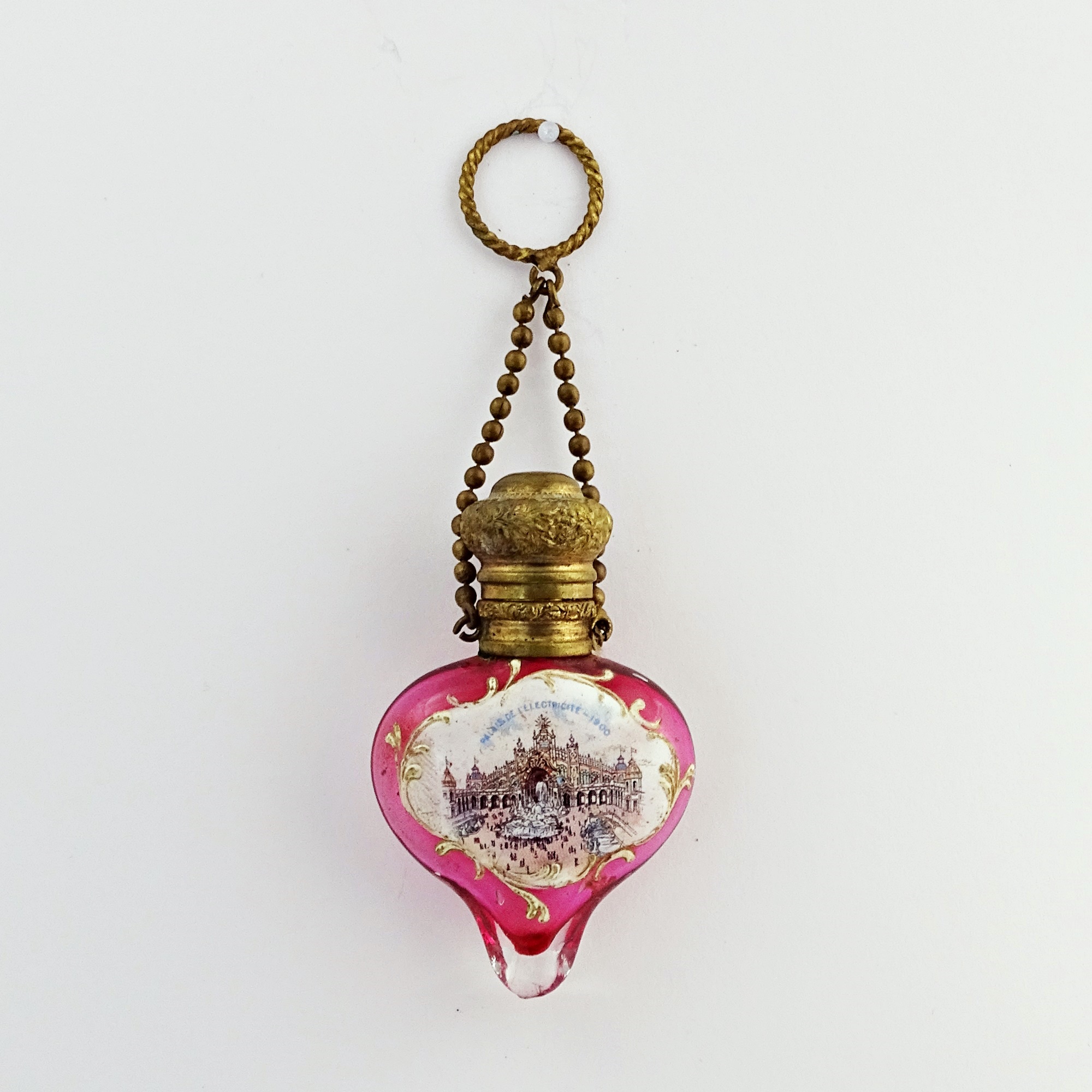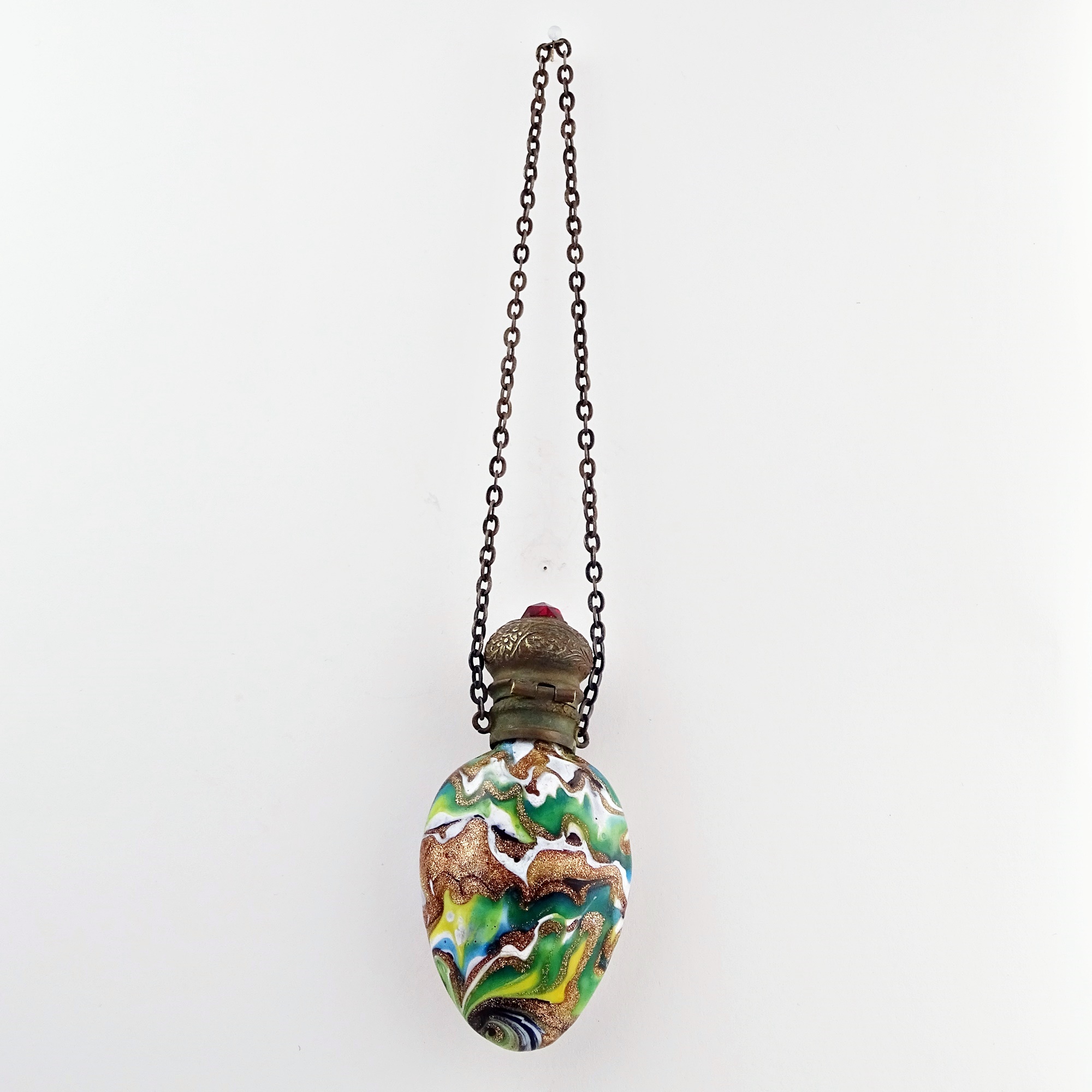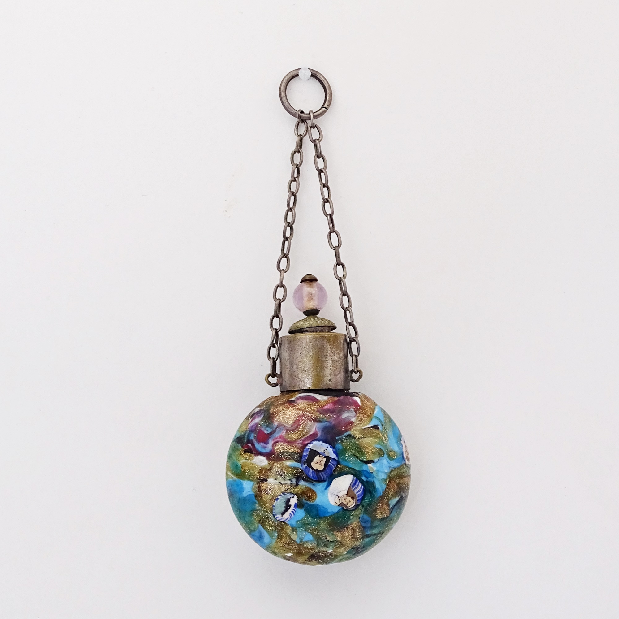 Chatelaine scent bottle in Murano glass with murrine featuring five portraits, a gondola and Rialto bridge Discover more