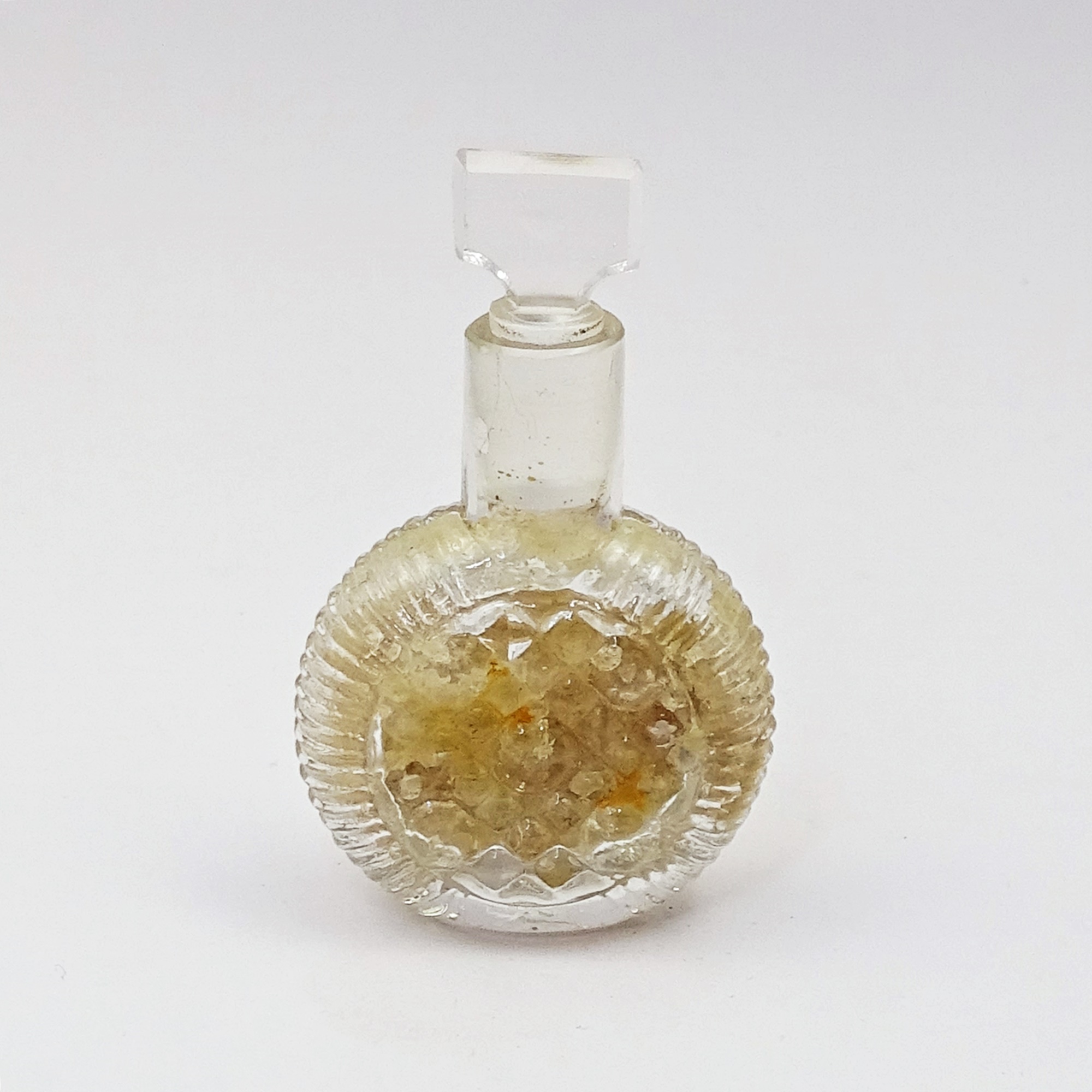 Lampworked scent bottle made of white spun glass with ‘Venezia’ and the date ‘1907’ in aventurine. Discover more