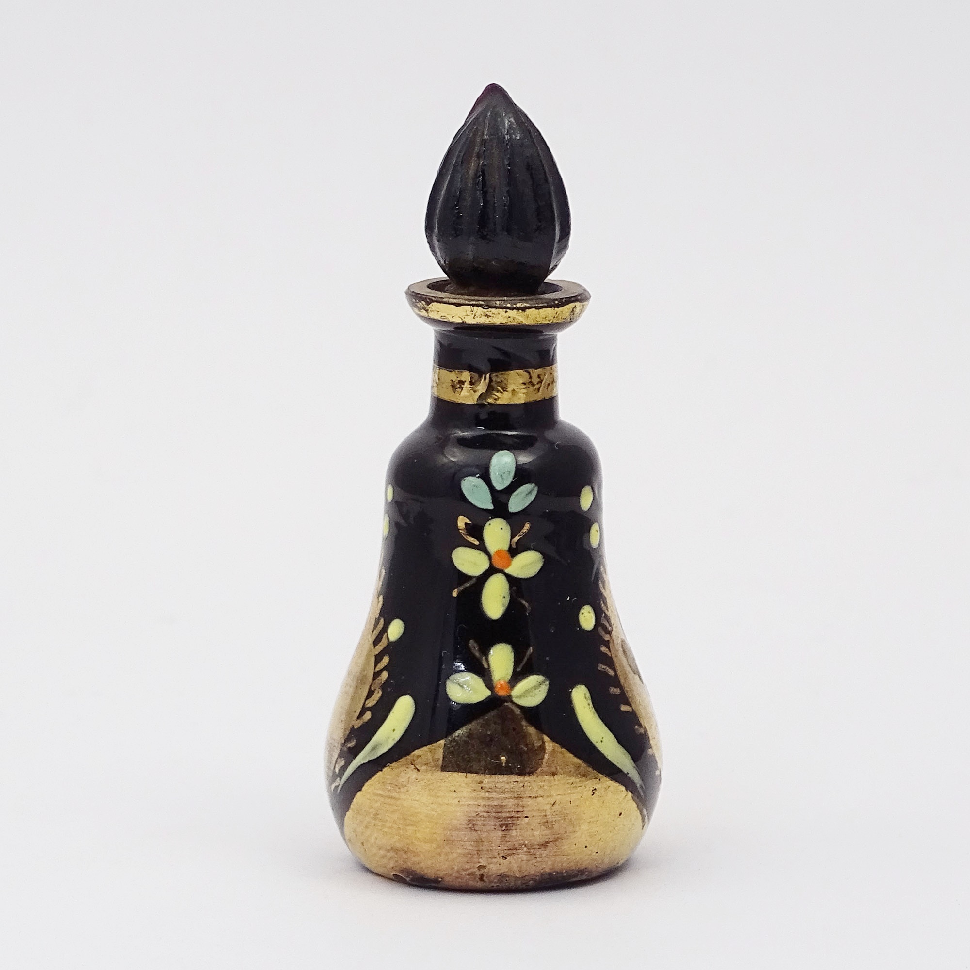 Teardrop scent bottle in a yellow glass lampwork bead with aventurine, roses and flowers Discover more