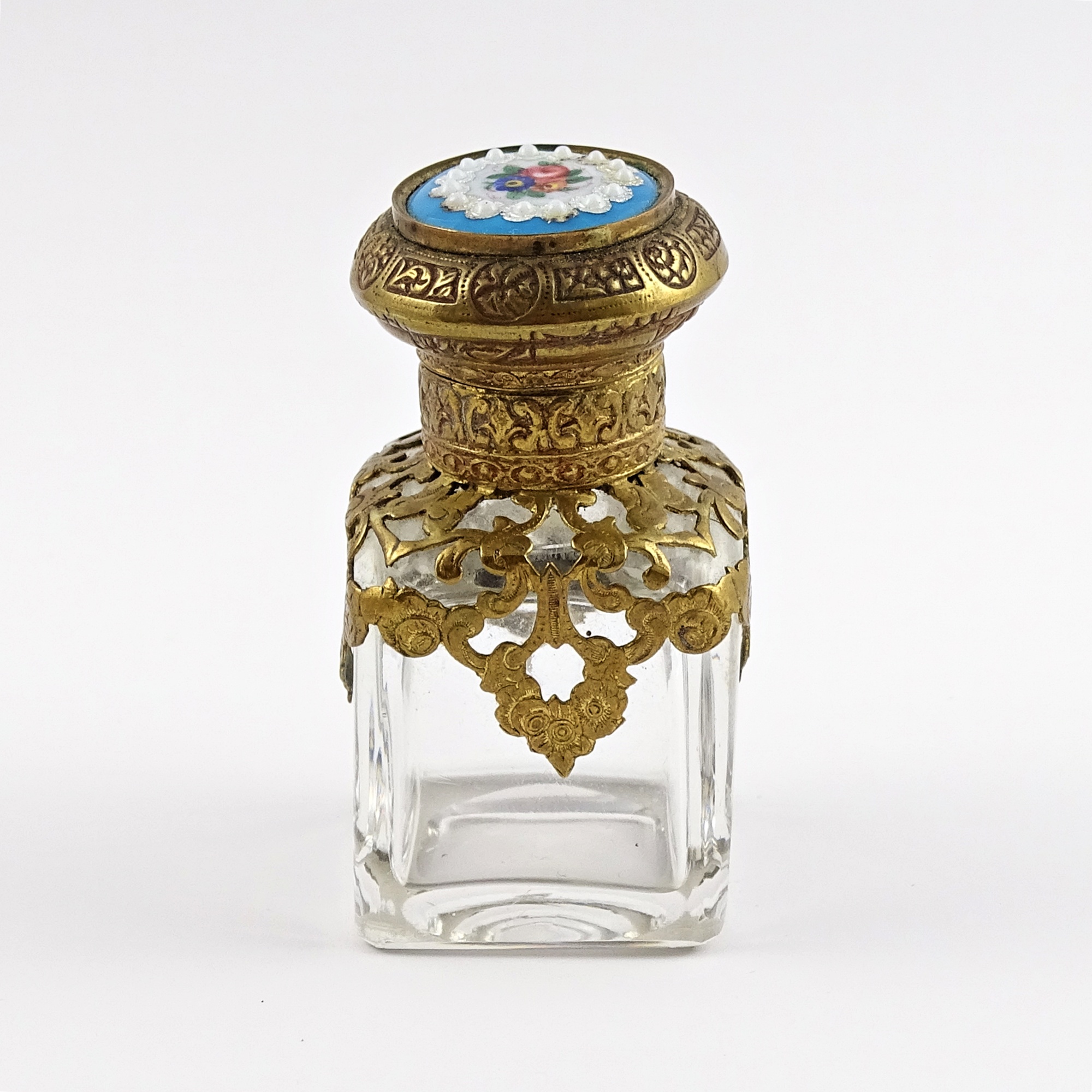 Palais Royal presentation: mother of pearl mandolin containing a glass and vermeil scent bottle Discover more