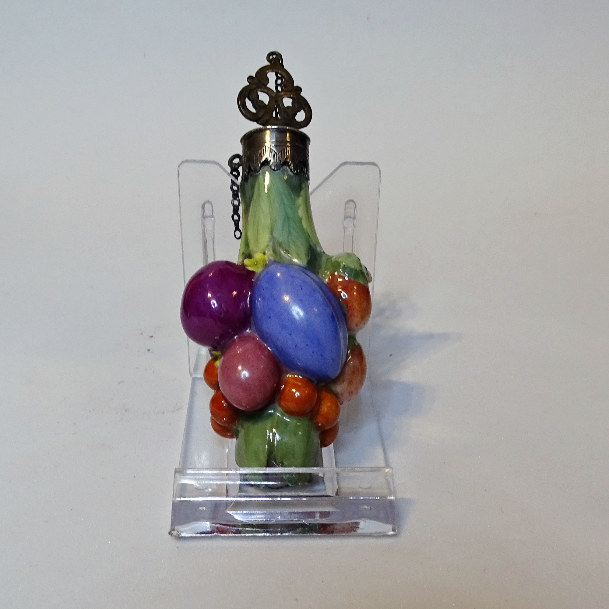 Chelsea porcelain scent bottle modelled as a cluster of fruits with leaves, in its case. Discover more