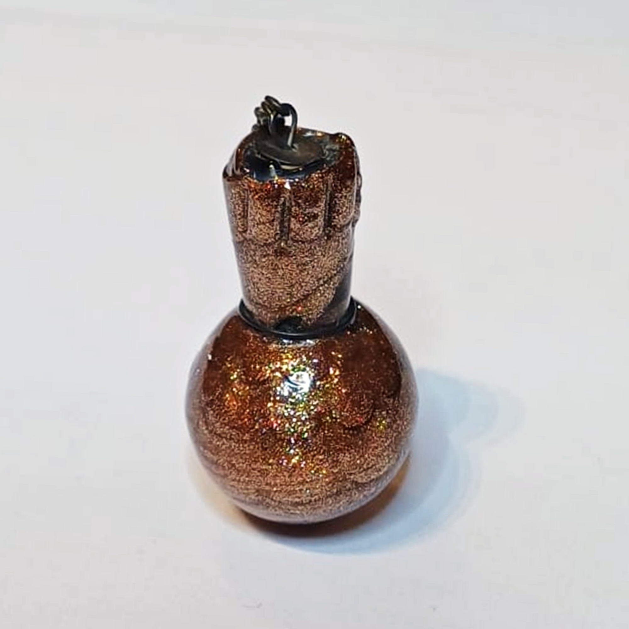 Flat round scent bottle in Murano glass with murrine featuring five portraits and a gondola Discover more