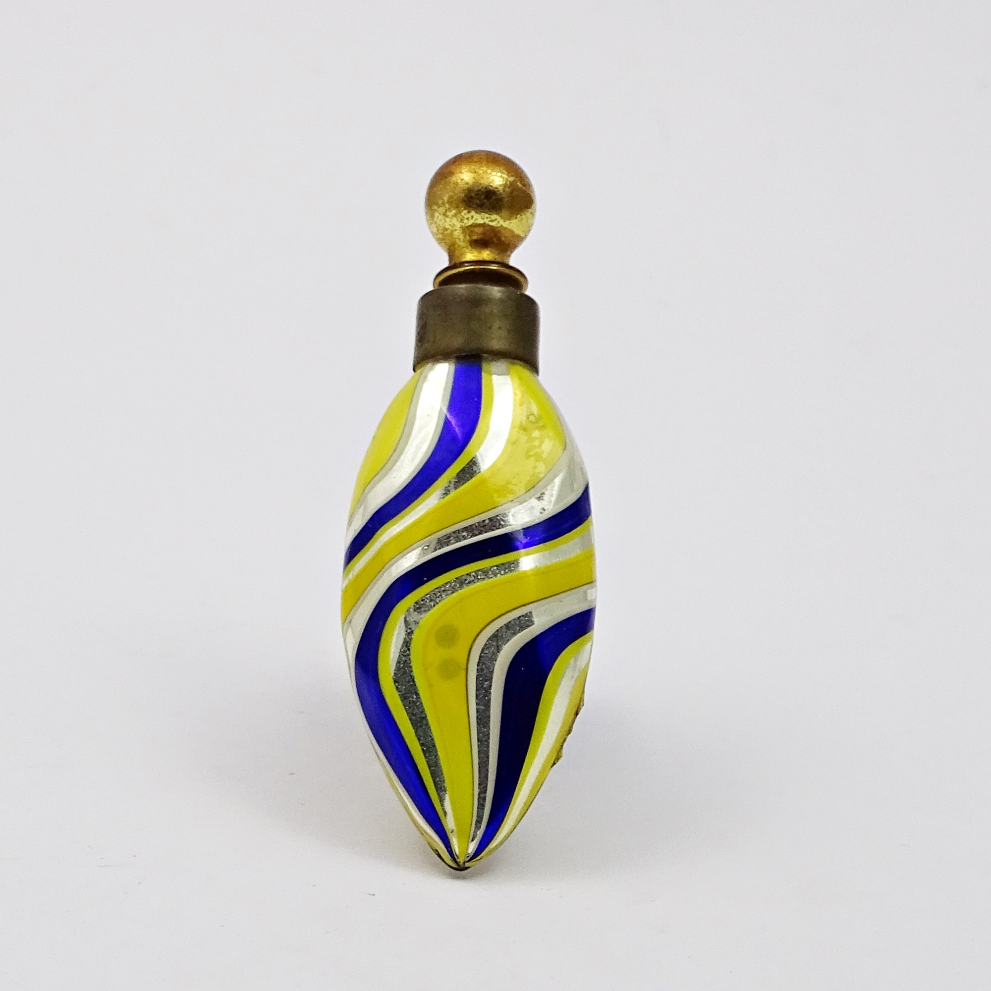 Round scent bottle in blue glass with a miniature of the Cologne Cathedral in white enamel Discover more