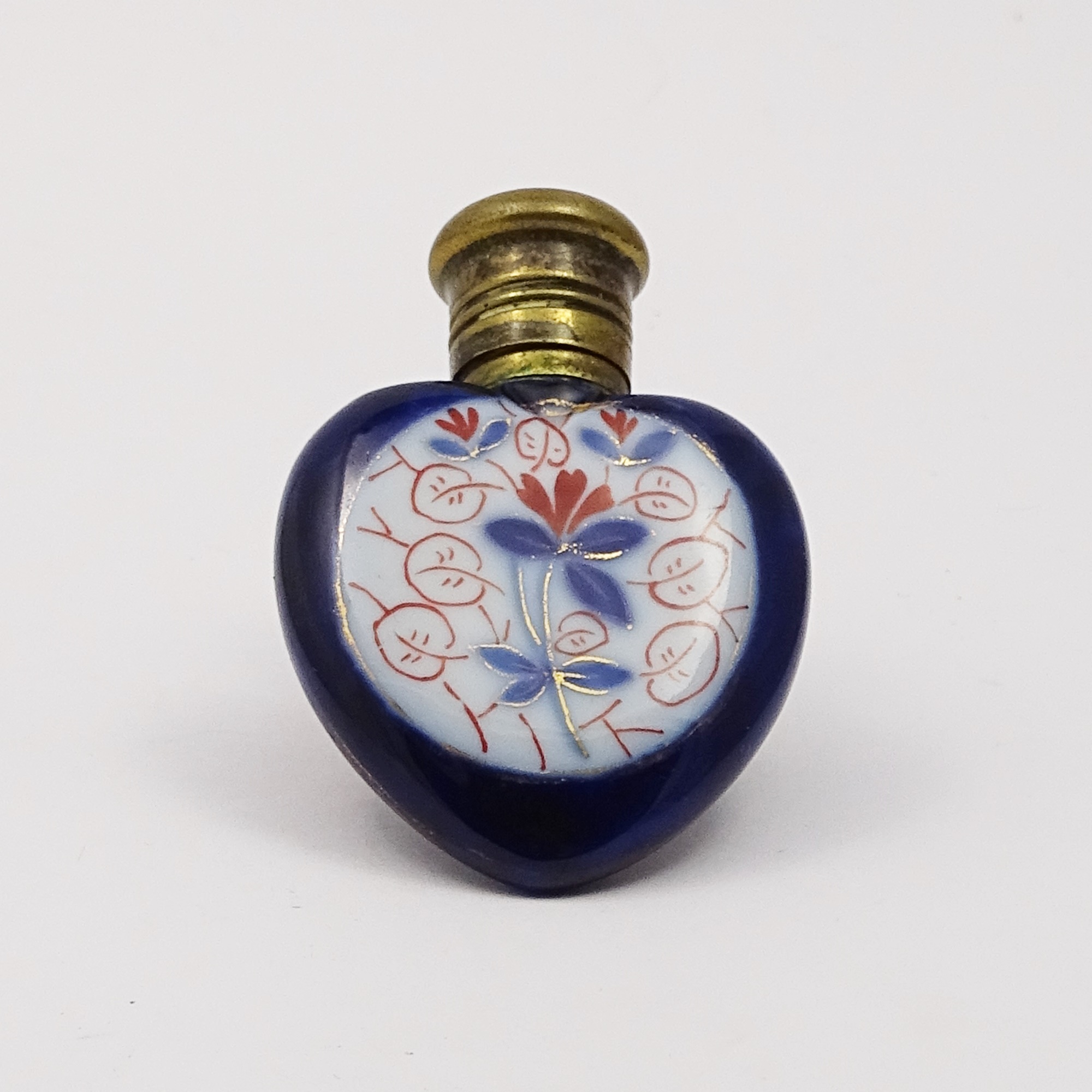 Porcelain scent bottle with two hand-painted scenes: a gentleman and a Chinese landscape in gold Discover more