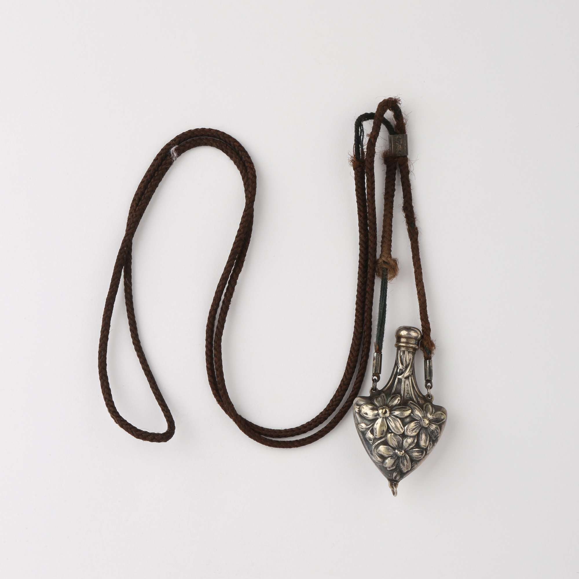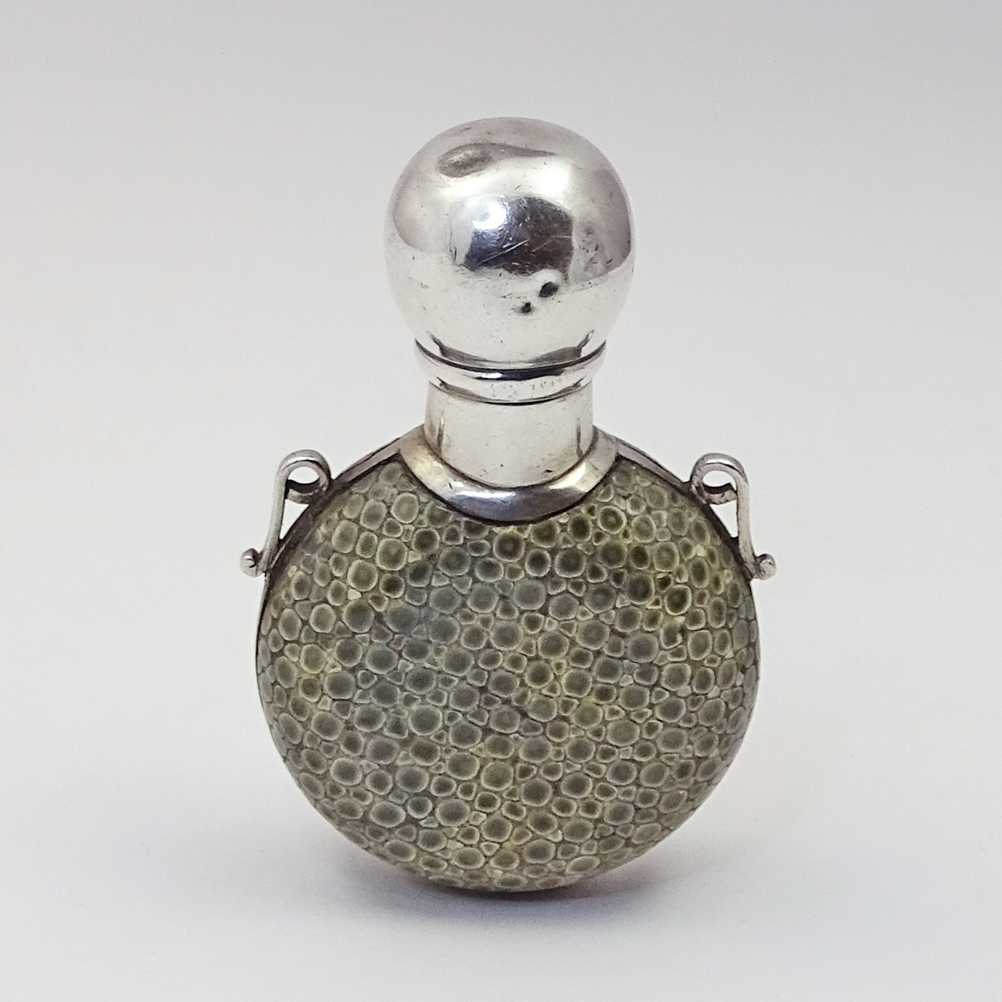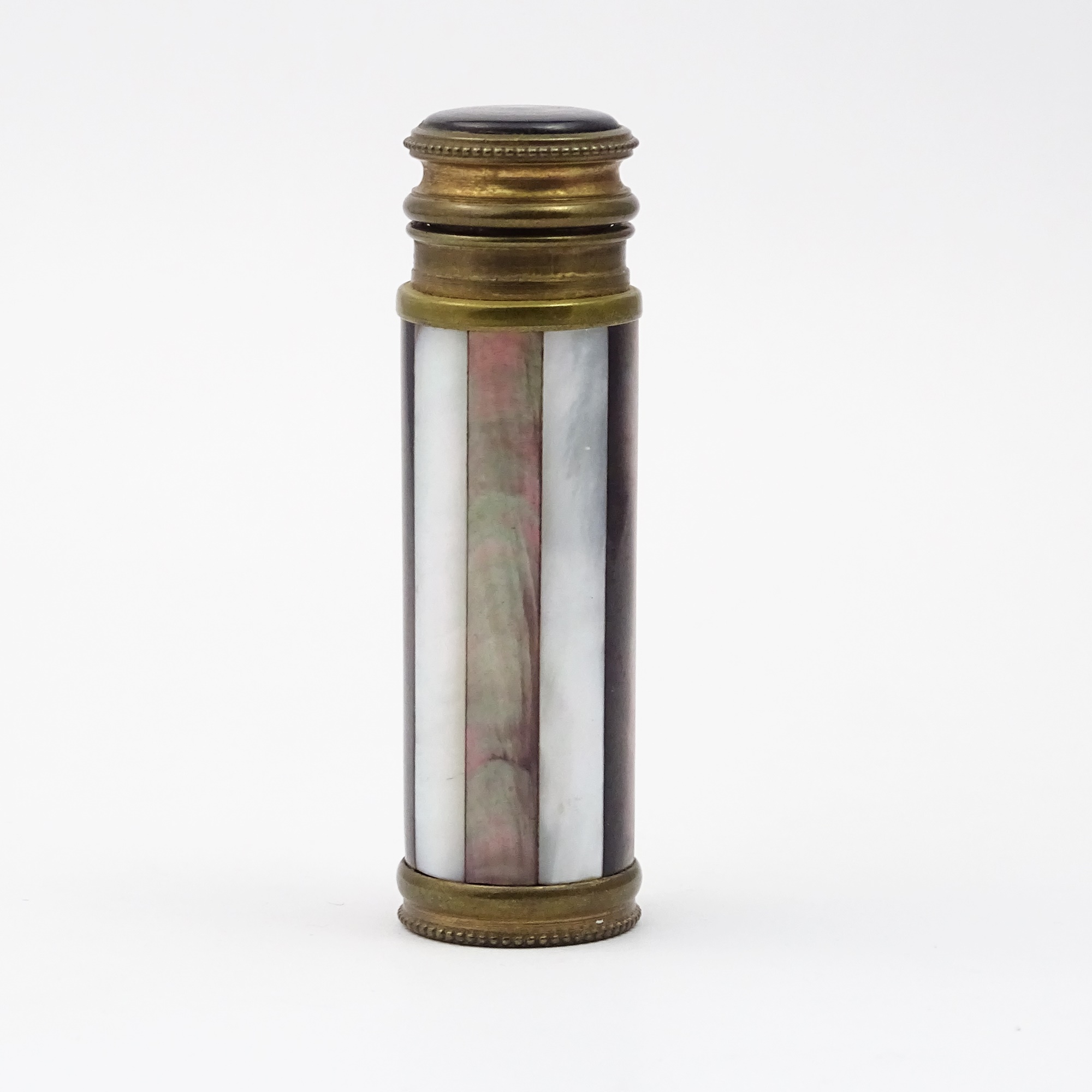 Clear glass scent bottle covered panels of mother of pearl decorate with two little flowers Discover more