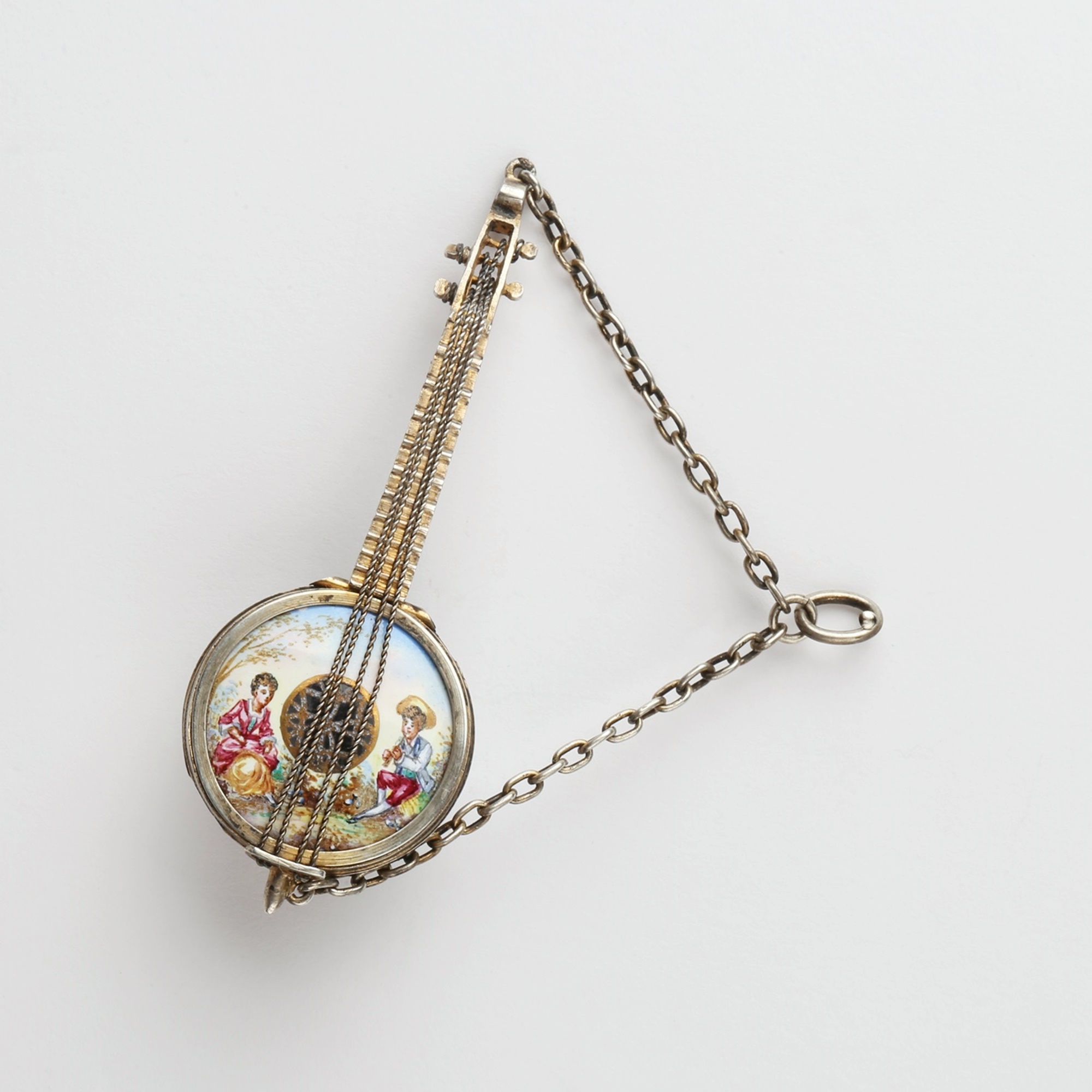 Round vinaigrette in blue enamelled silver with rich gold decoration and inner painted bouquet Discover more