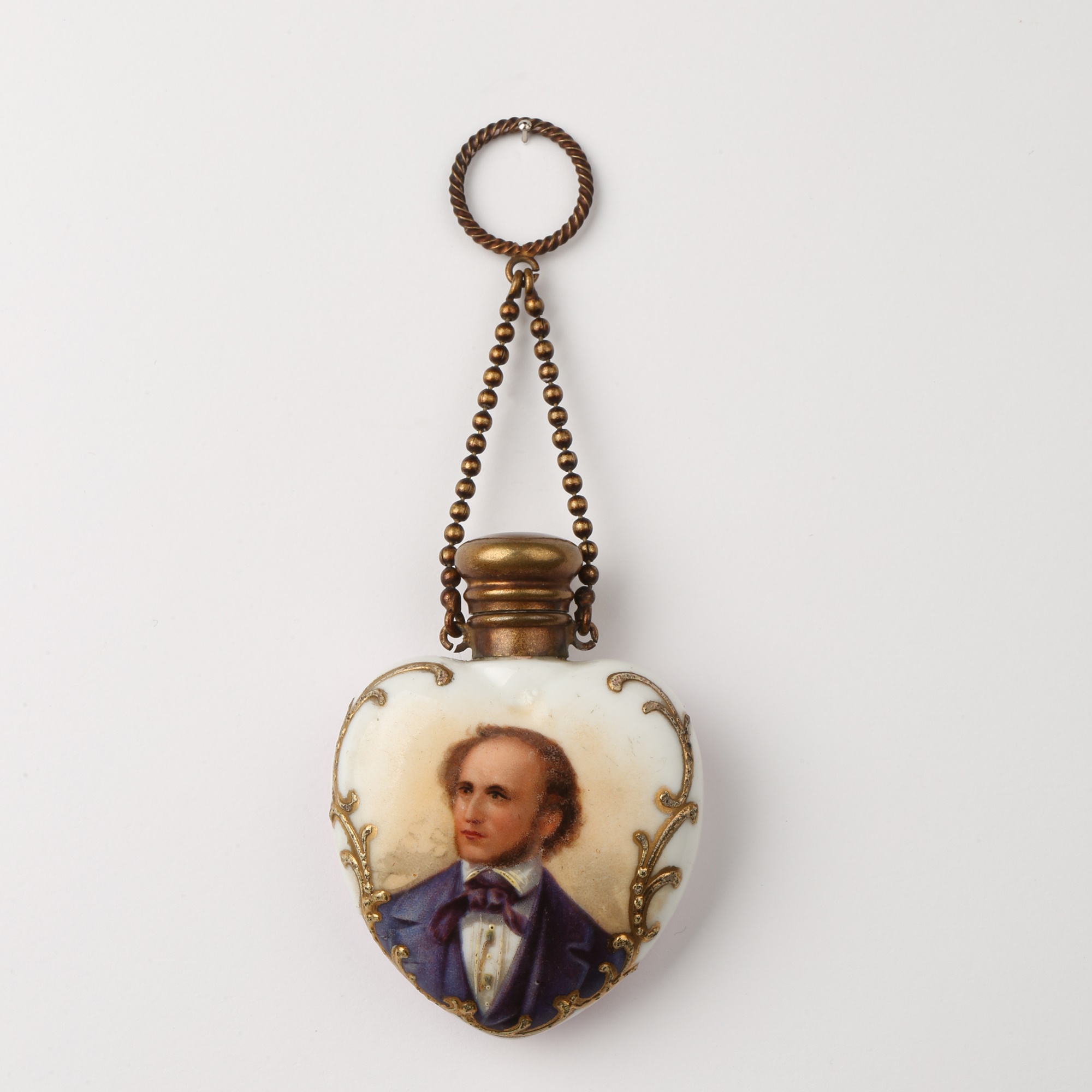Heart-shaped chatelaine scent bottle in porcelain with the portrait of Felix Mendelssohn Bartholdy Discover more