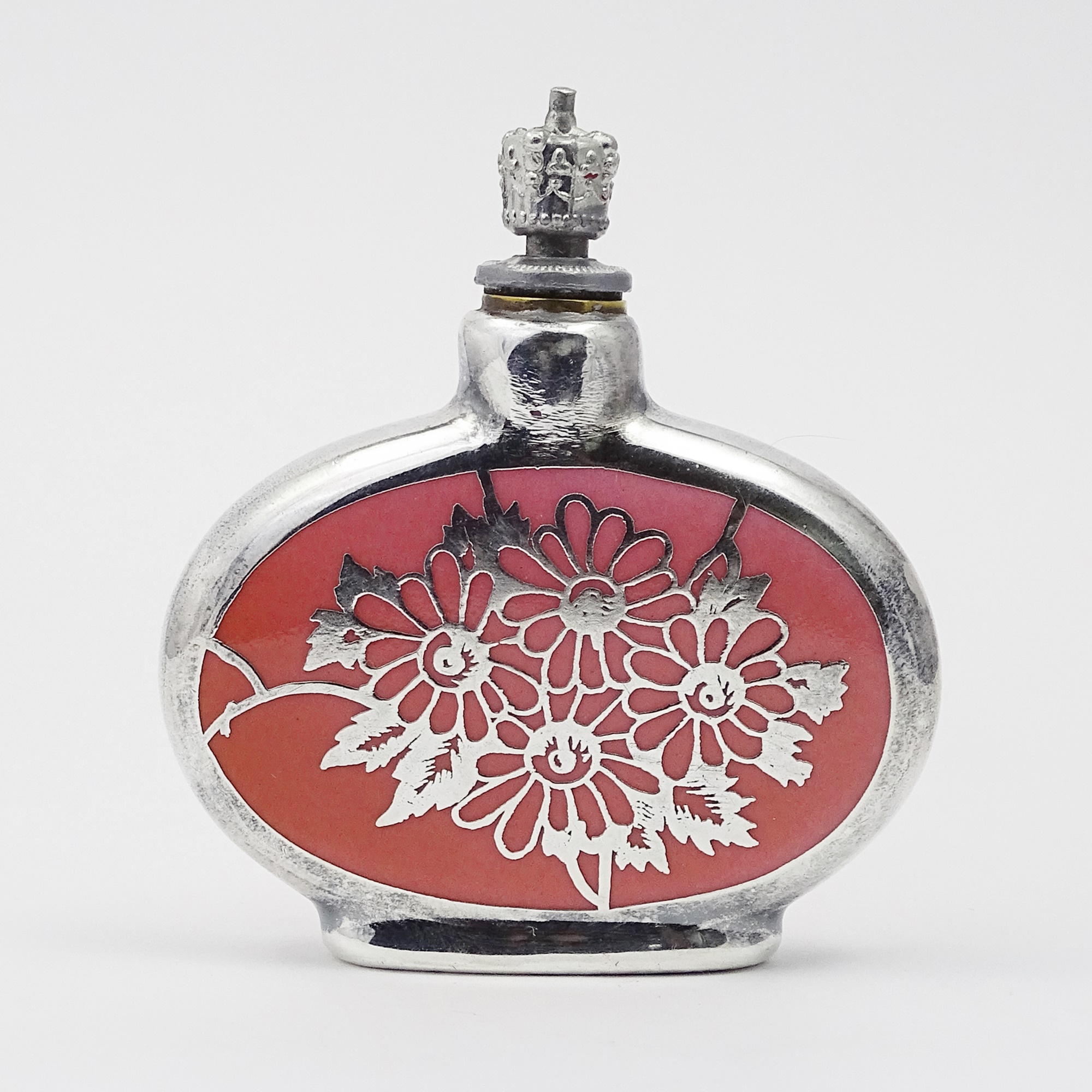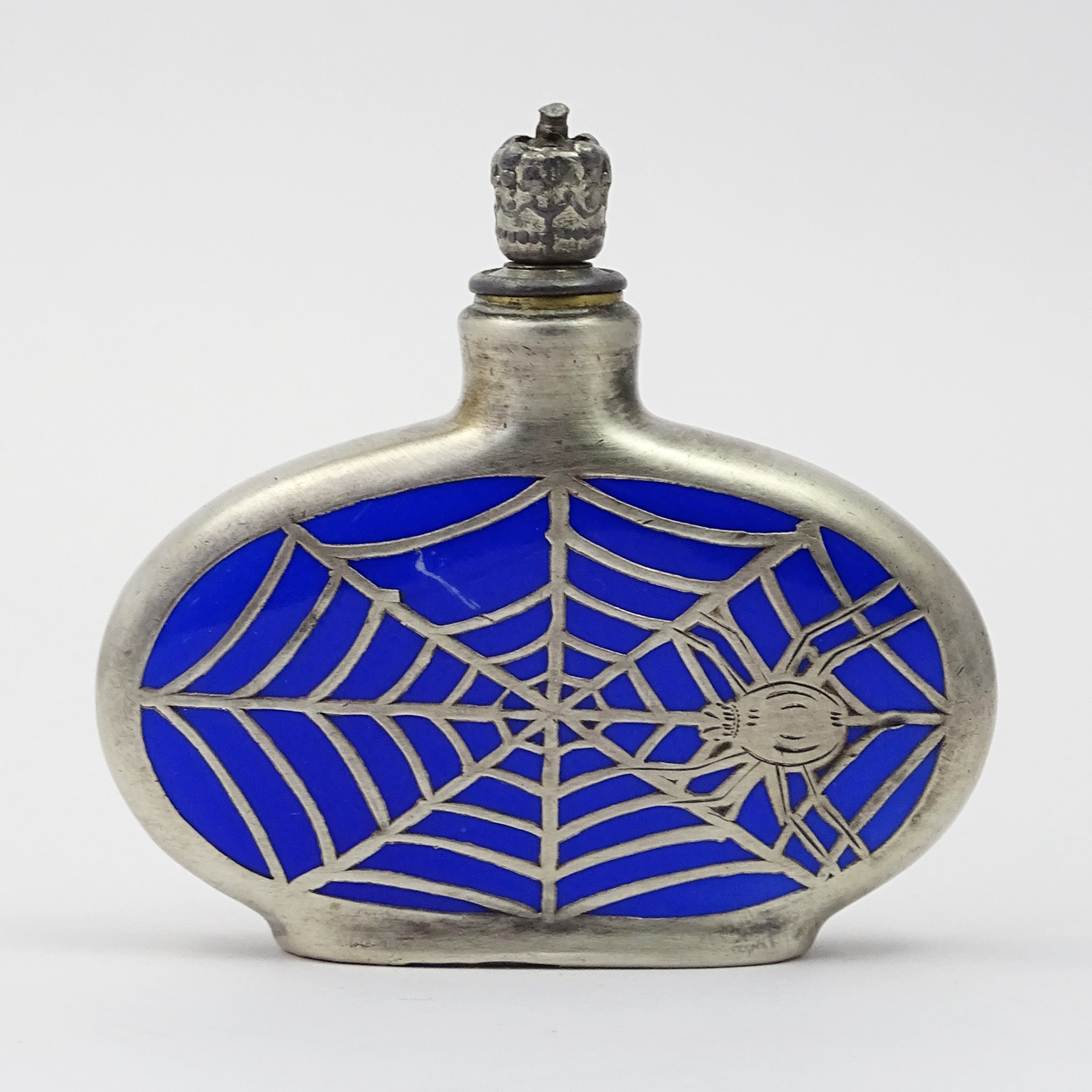 Turquoise glass scent bottle of unusual shape with rich gold decor in the so called “Moser style” Discover more