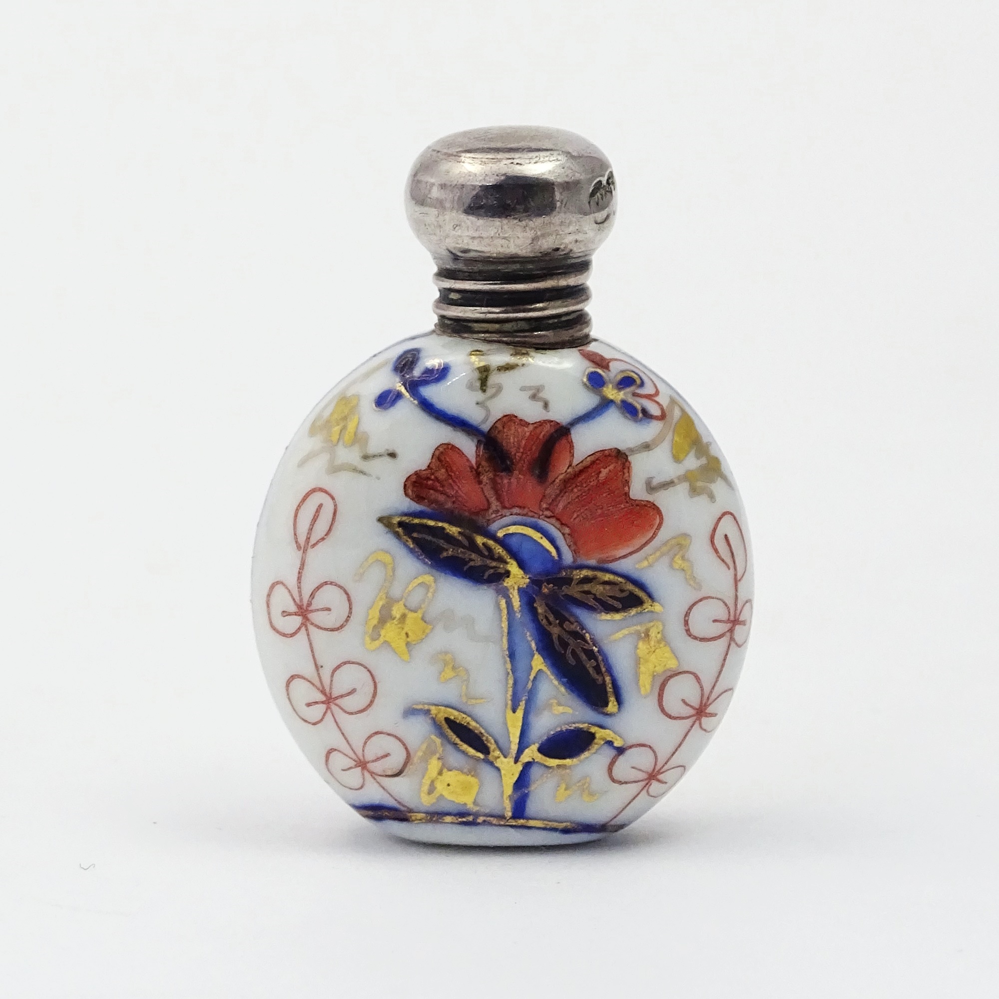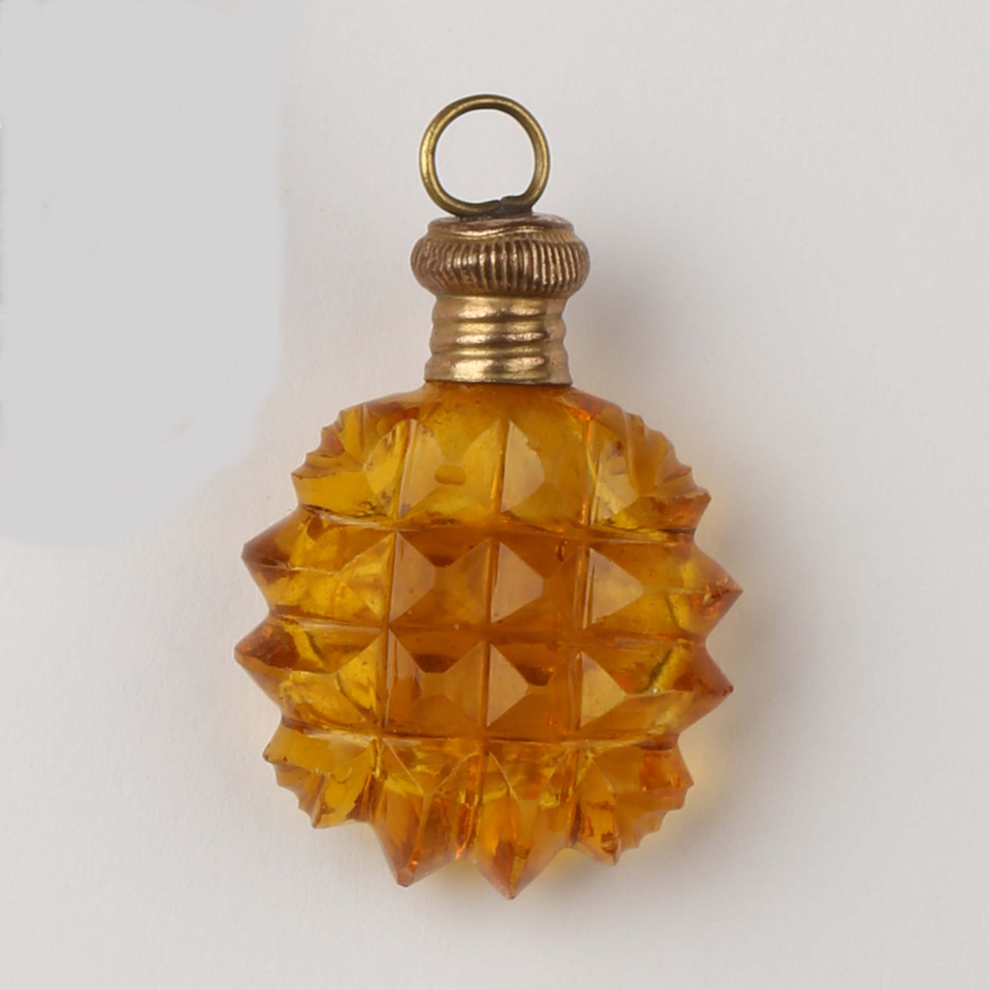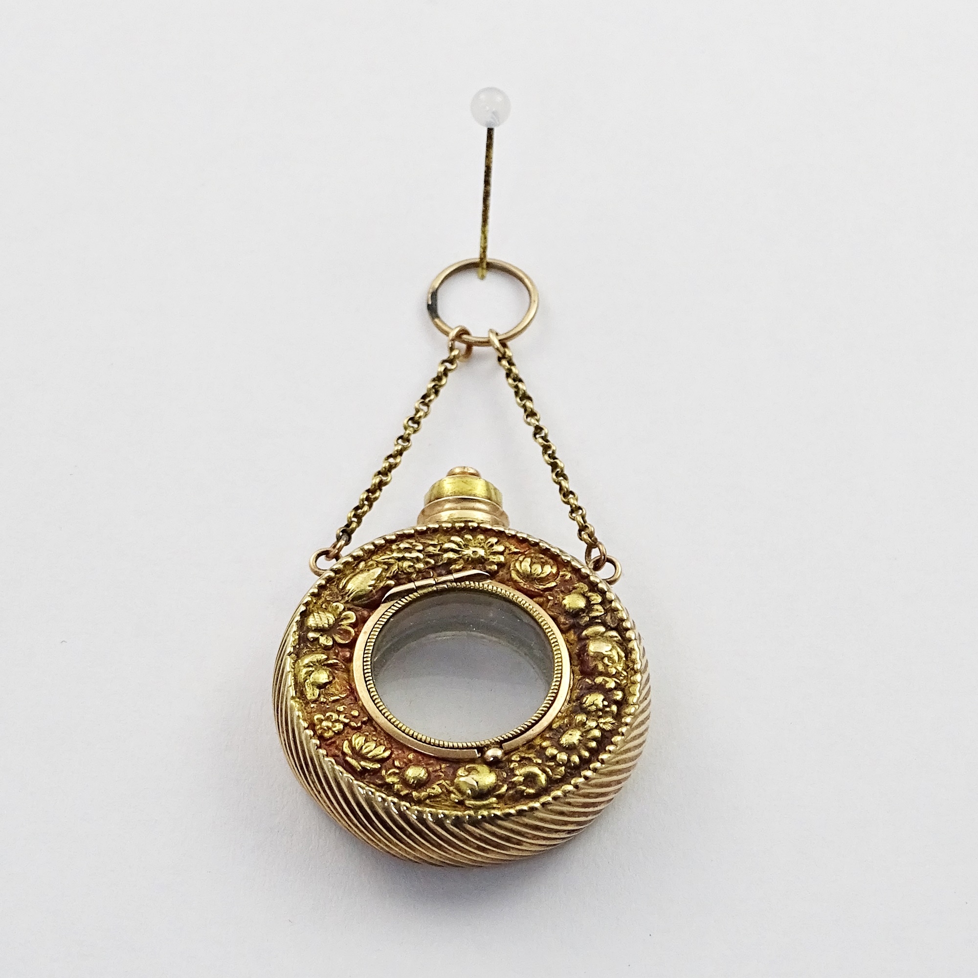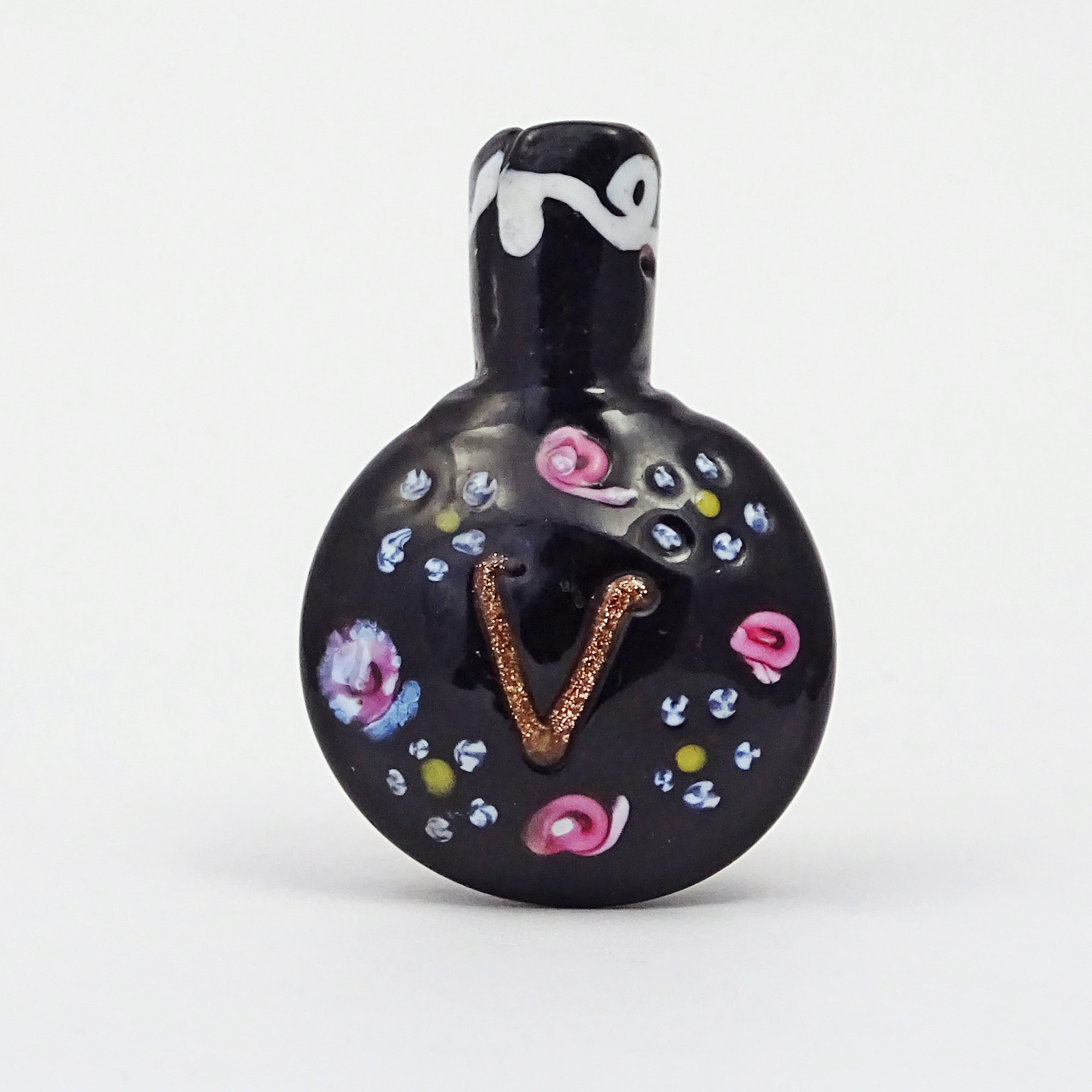 Round flat scent bottle in a black glass lampwork bead with V and S in aventurine (Venice Souvenir) Discover more
